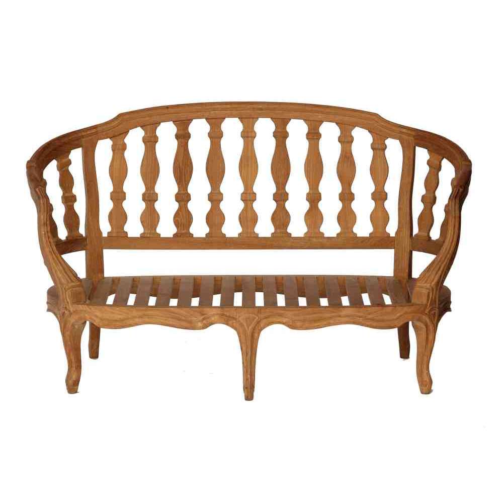 BLEUET : Sofa z drewna tekowego (tralka). Wymiary: 83 x 138 x 66 (28) cm. Dostępne wzory: włókno syntetyczne, laska francuska, balustrada.