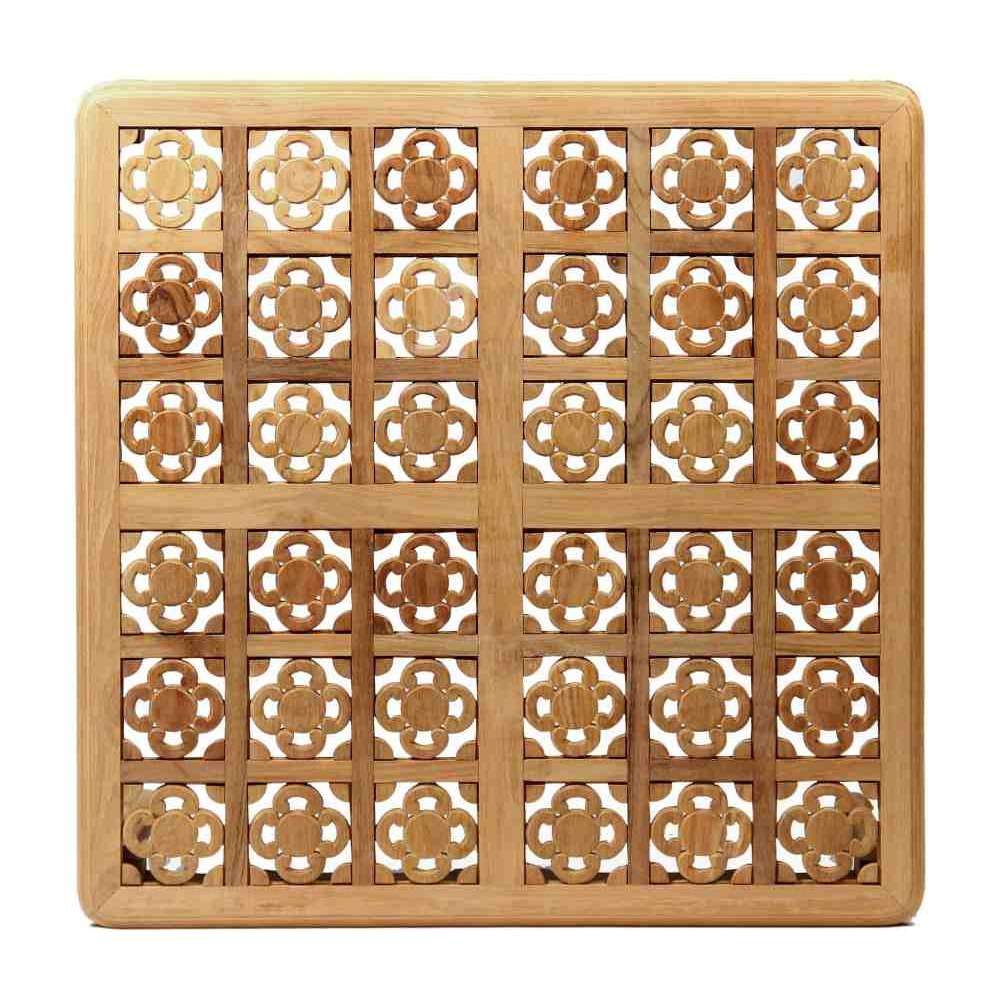 GWARANCJA: Stolik kawowy z drewna tekowego (parkiet ażurowy). Wysokość: 40,5 cm. Wymiary: 89 x 63 x 68,5 (35) cm. Dostępne różne rozmiary. Blaty parkietowe pełne lub ażurowe.