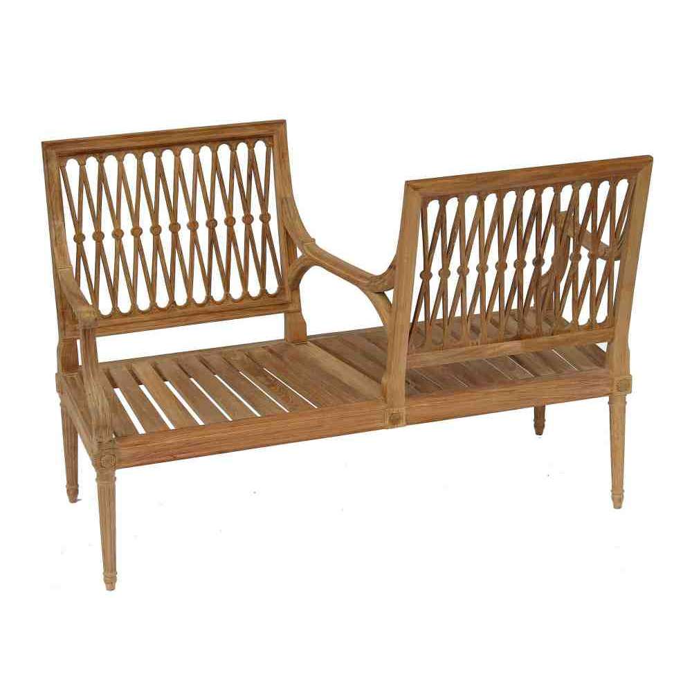 SERPENTYN : Vis-à-vis z drewna tekowego (ażurowe). Wymiary: 91 x 140 x 61 (40) cm. Dostępne wzory: Ażurowe, Kratowe, Włókno syntetyczne, Laska francuska, Tapicerowane, Moucharabieh, Balustrada.