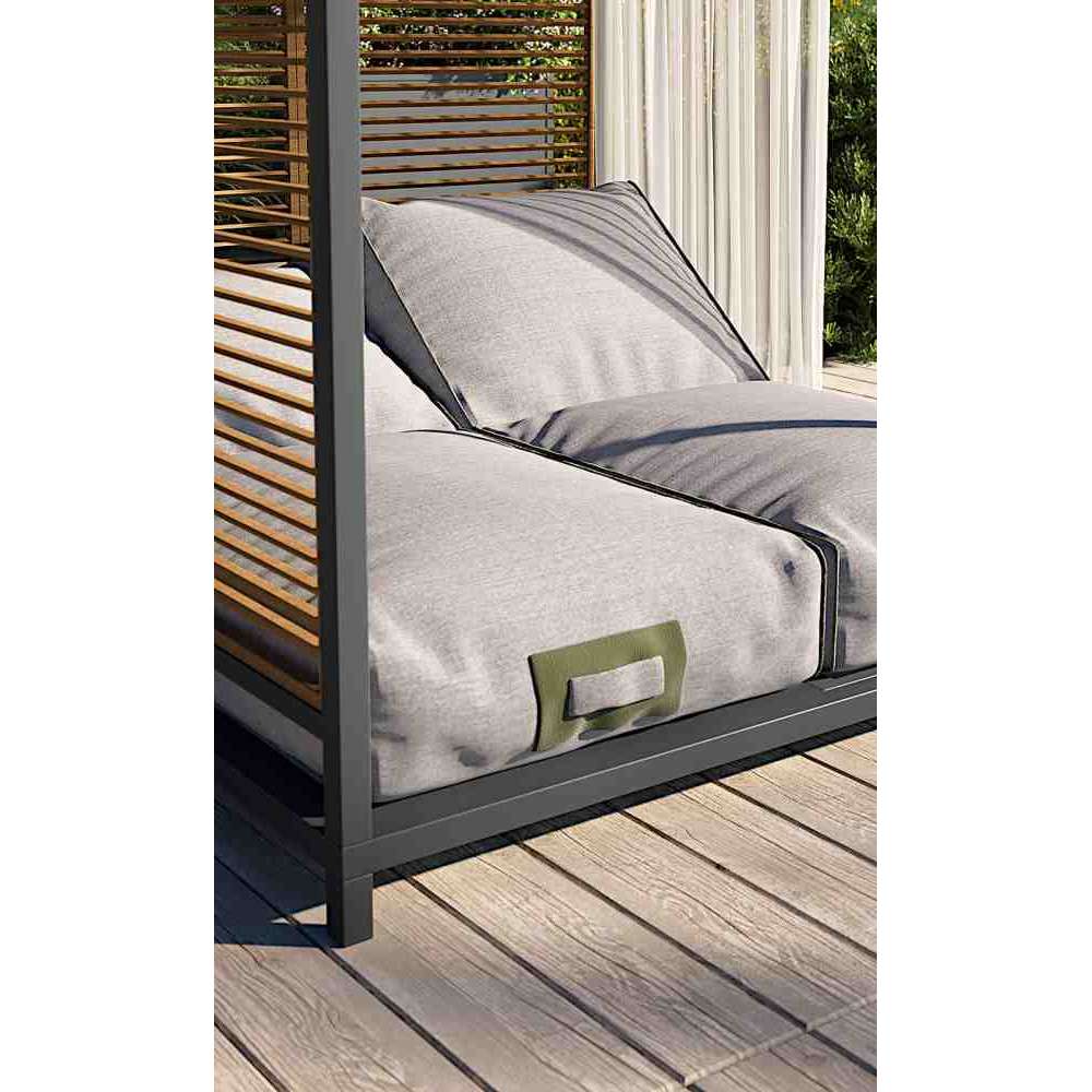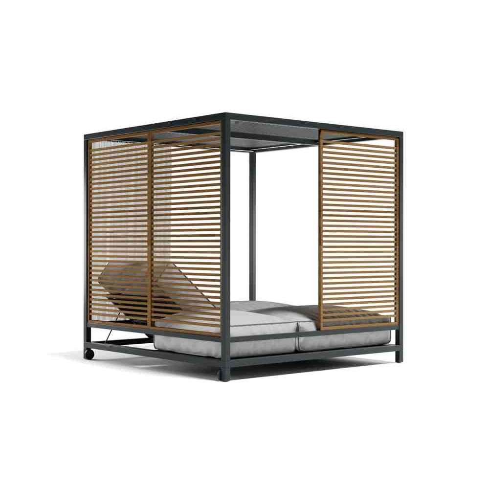 ALCOVA to łóżko ogrodowe z aluminium i tkaniny malowanej proszkowo.