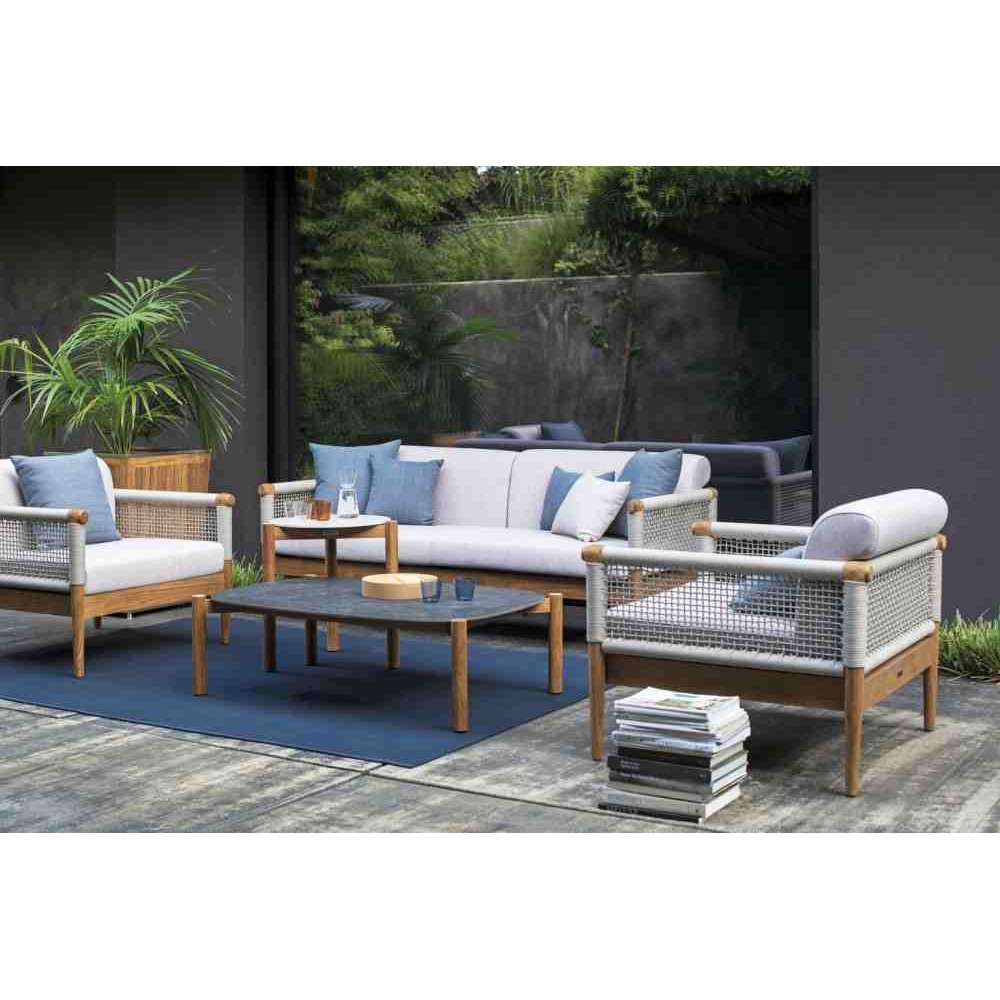 Lodge to wysoki stolik kawowy ogrodowy ze strukturą Solid Asian TEAK; Gresowy blat dostępny w dwóch kolorach wykończenia tylko do stolika kawowo-serwisowego Zeta oraz stolika serwisowego Frisbee. Wykończenia mają naturalny i miękki w dotyku wygląd, co nadaje kolekcji wyrafinowania i charakteru.