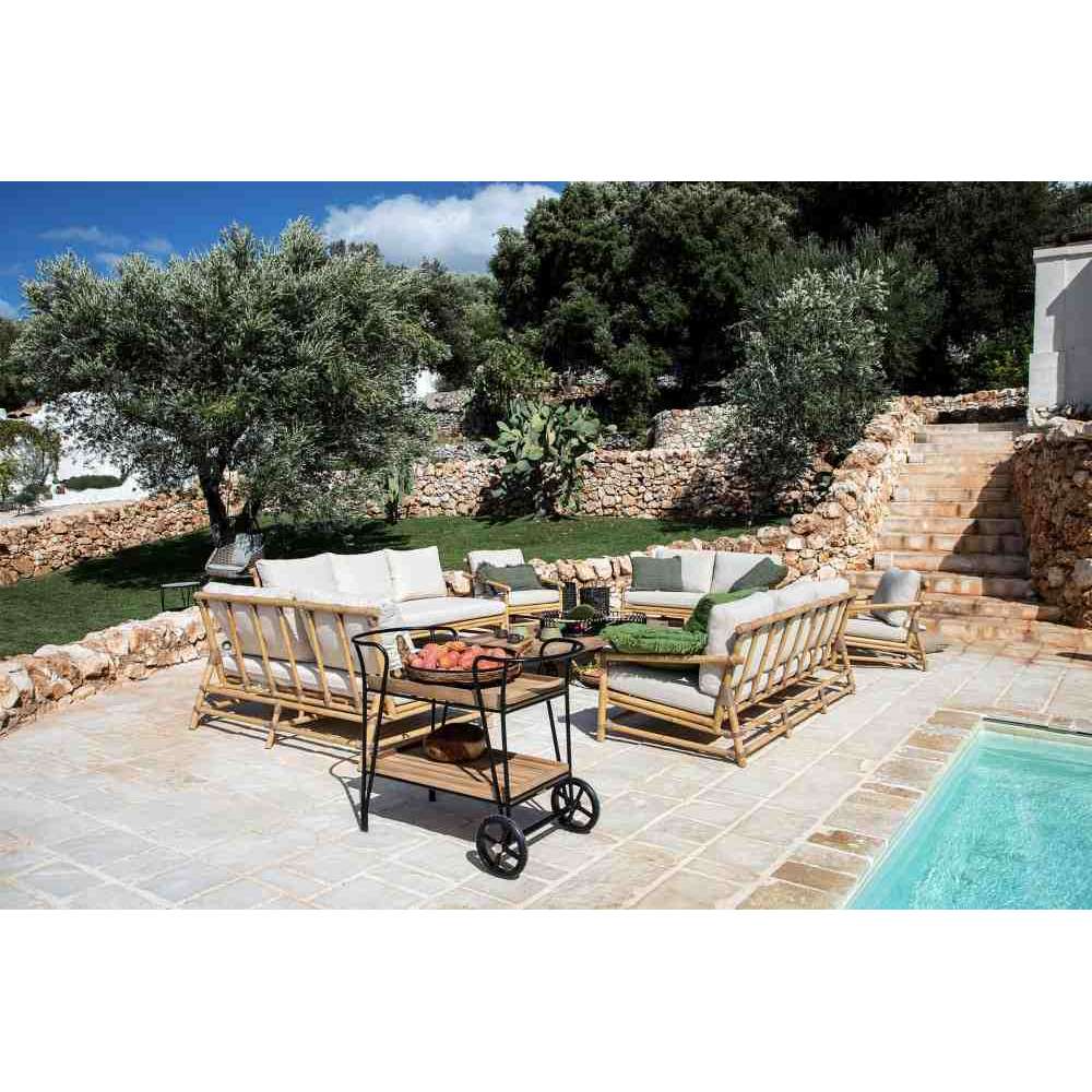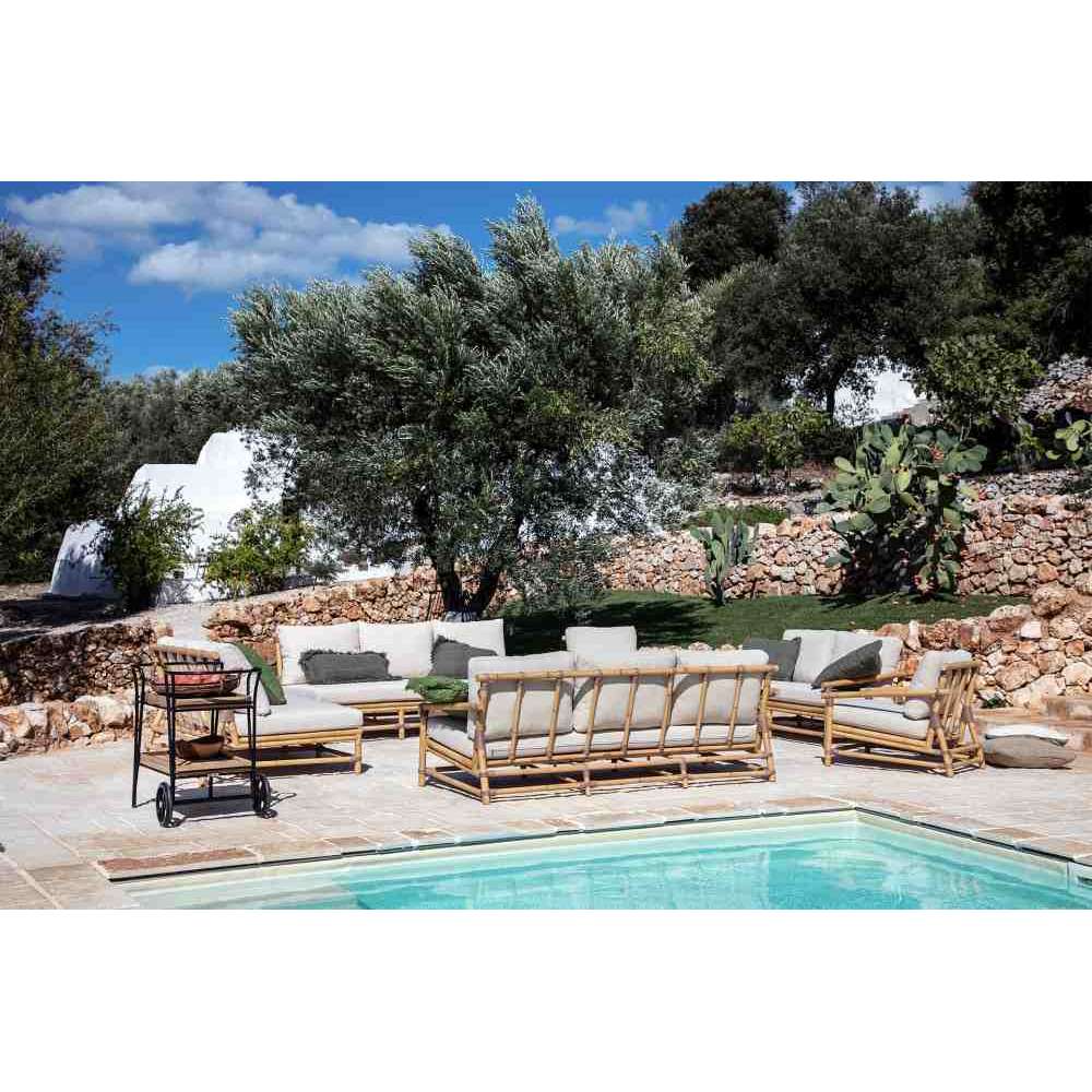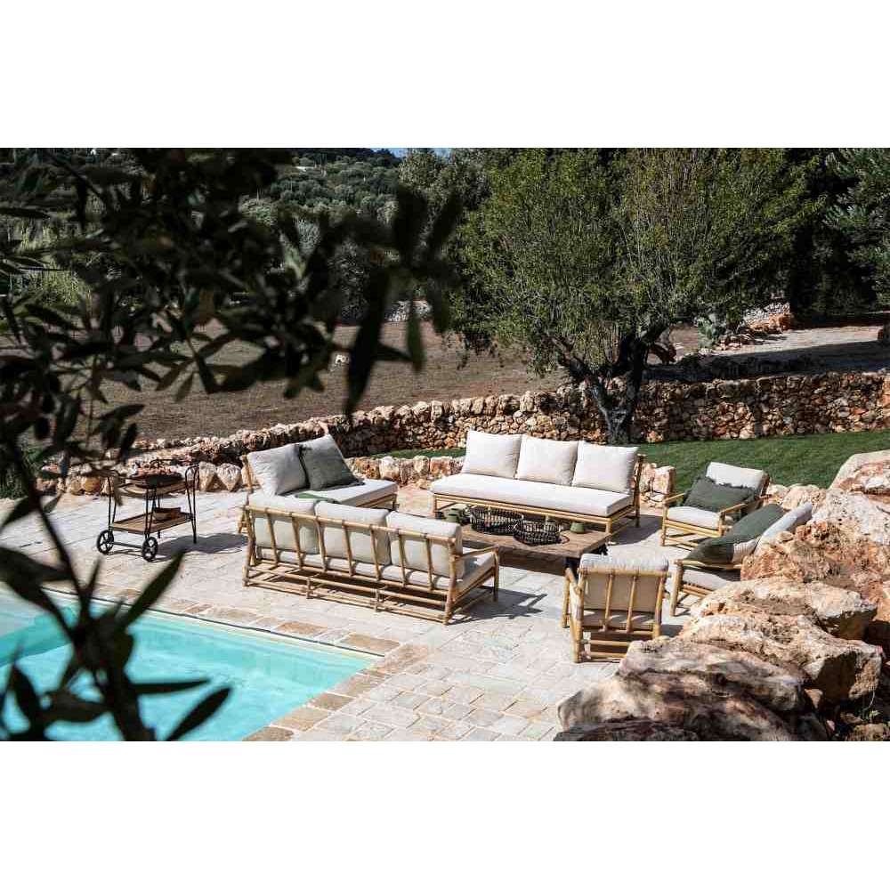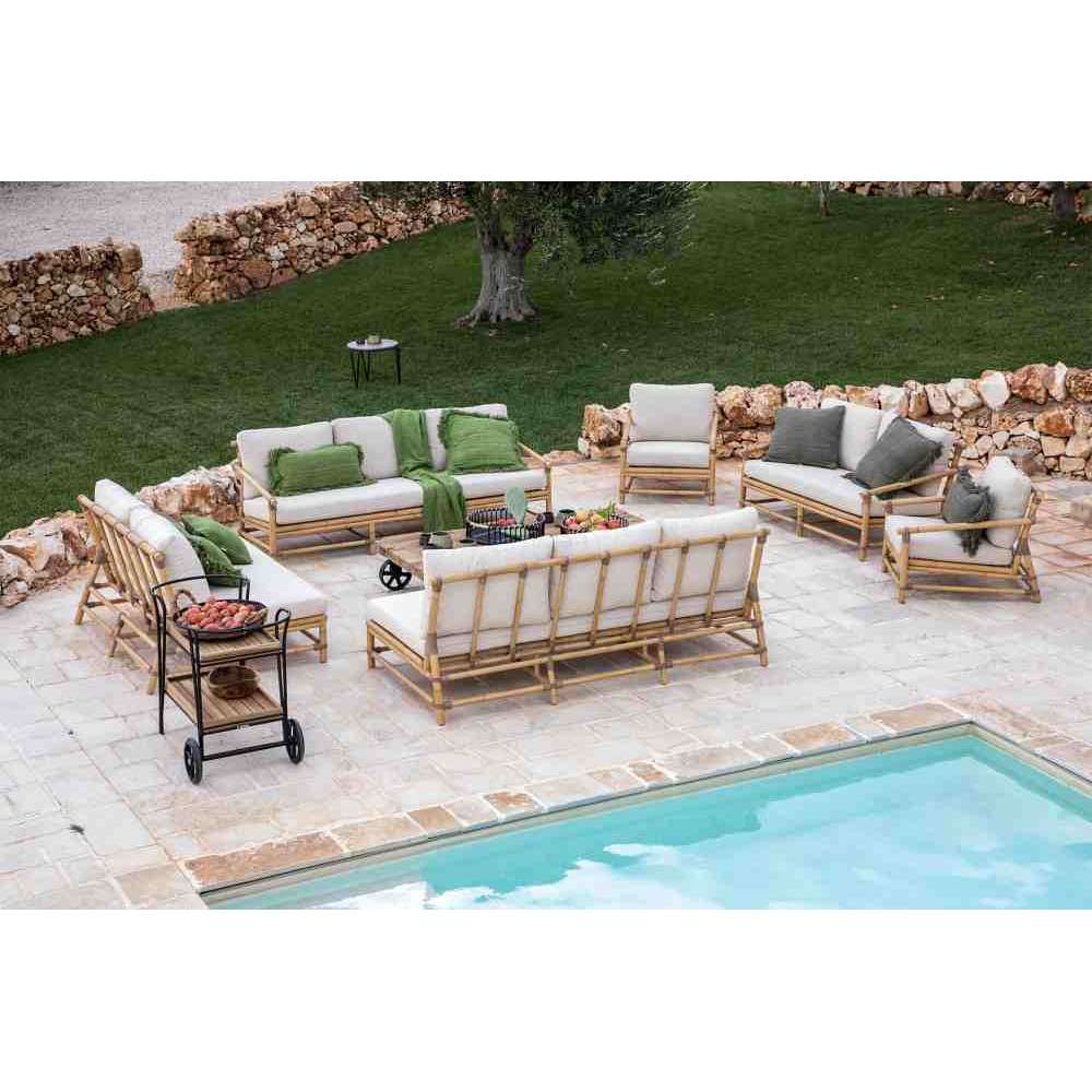 Rozgość się i zrelaksuj w stylu retro i kolonialnej atmosferze Florencji: wyjątkowa kolekcja foteli i sof, w której żyłki, sęki i odcienie są typowe dla naturalności rattanu, są odtwarzane ręcznie przez artystów rzemieślników na konstrukcji aluminiowej. Miękkie, wyściełane poduszki są gotowe do przytulenia i otulenia, kiedy tylko zechcesz, aby zaszczepić uczucie absolutnego spokoju w ciele i umyśle.