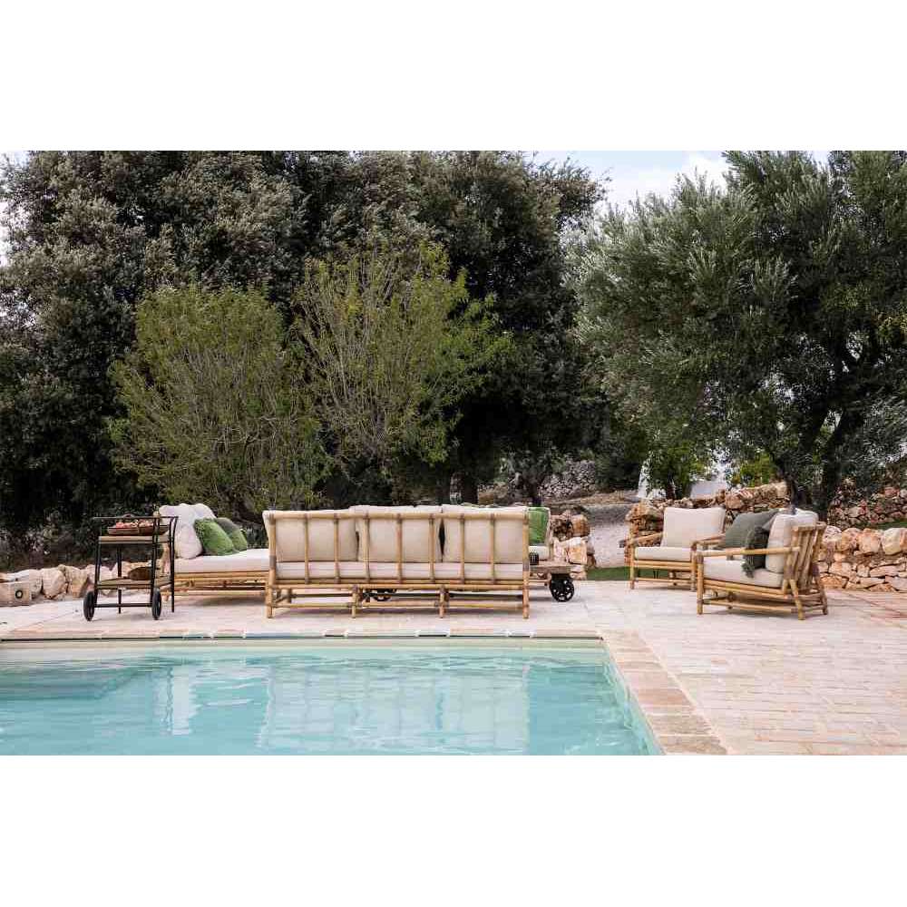 Rozgość się i zrelaksuj w stylu retro i kolonialnej atmosferze Florencji: wyjątkowa kolekcja foteli i sof, w której żyłki, sęki i odcienie są typowe dla naturalności rattanu, są odtwarzane ręcznie przez artystów rzemieślników na konstrukcji aluminiowej. Miękkie, wyściełane poduszki są gotowe do przytulenia i otulenia, kiedy tylko zechcesz, aby zaszczepić uczucie absolutnego spokoju w ciele i umyśle.