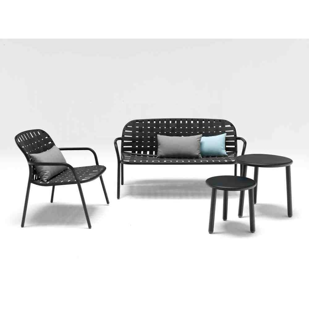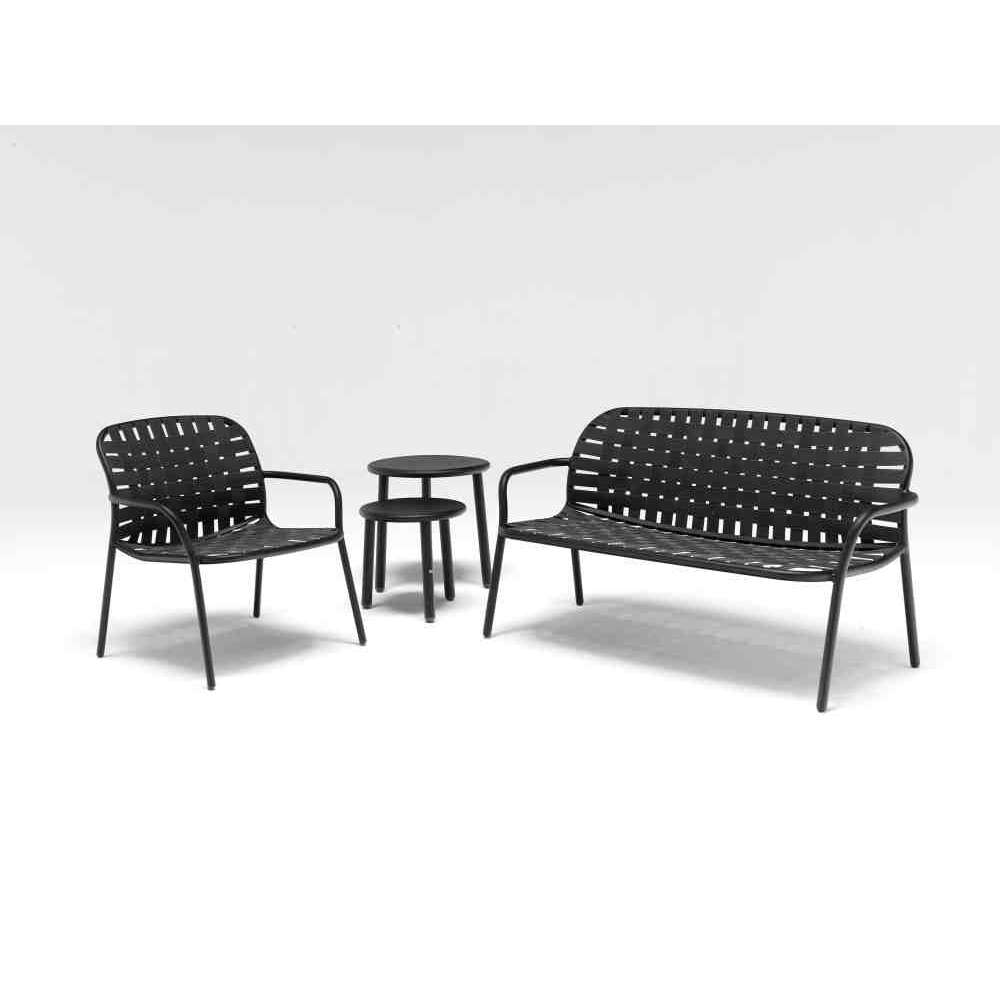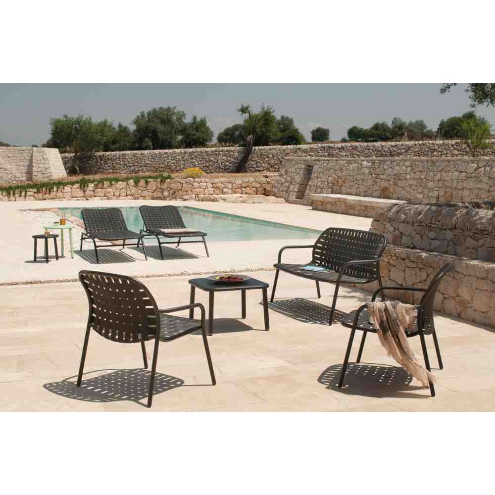 Tkane, elastyczne paski, połączone w innowacyjny sposób z wyrafinowaną aluminiową ramą, ożywiają kolekcję wyróżniającą się wyjątkowym, eklektycznym stylem i doskonałym komfortem, doskonale nadającą się do użytku na zewnątrz. Yard to kompletna gama mebli, składająca się z krzesła, fotela, stołów stałych, foteli relaksacyjnych, stolików kawowych różnej wielkości oraz leżaka. Charakterystyczną cechą kolekcji Yard jest sposób, w jaki łączy ona materiały, takie jak stal nierdzewna czy popiół z aluminium. Kolekcję uzupełniają różnej wielkości stoły nablatowe, zarówno do zabudowy kontraktowej, jak i mieszkaniowej.