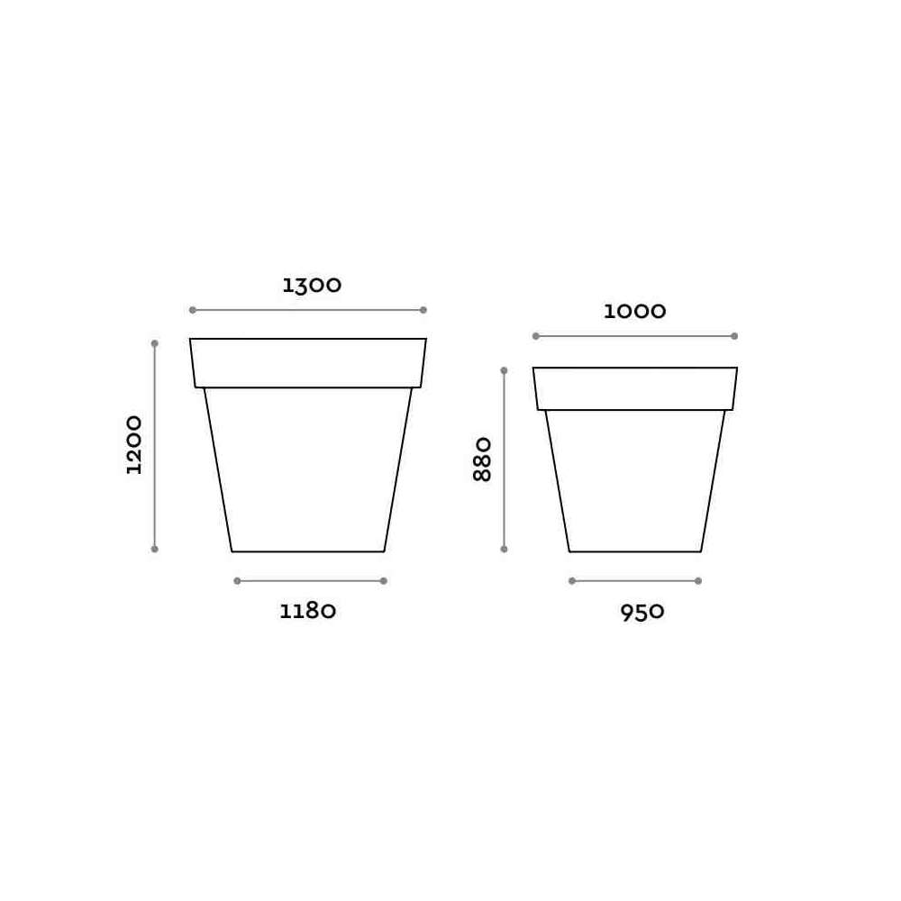 Duży to wazon polietylenowy, matowy, w 100% nadający się do recyklingu, duży rozmiar. Do stosowania wewnątrz i na zewnątrz.