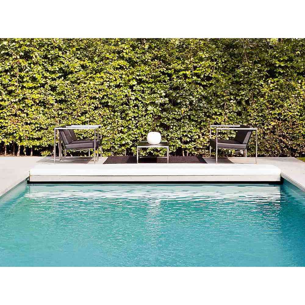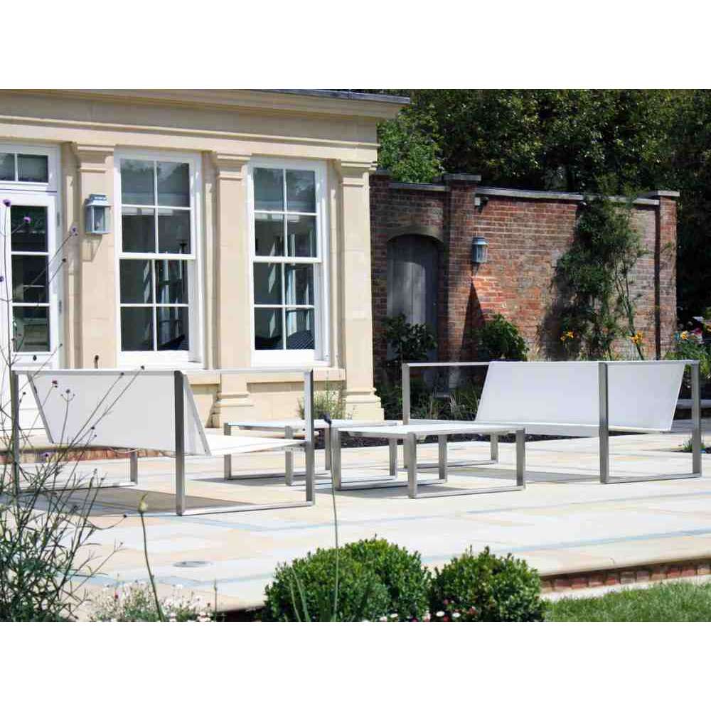 SALON BANCA . Współczesna sofa ogrodowa zaprojektowana przez Hendrika Steenbakkersa . Prostokątne podłokietniki Cima BANCA LOUNGE utrzymują fotel w zawieszeniu, które wydaje się unosić w powietrzu. Ta luksusowa sofa jest częścią kolekcji Cima Lounge Collection i ma czysty, minimalistyczny i architektoniczny design. Poduszki dostępne są ze zwykłej tkaniny akrylowej lub alternatywnie Stamskin®, która jest skórą syntetyczną, przeznaczoną do całorocznego użytku na zewnątrz. BANCA LOUNGE jest często używany w połączeniu z krzesłem Poltrona Lounge, stołem Tabla Lounge lub jako część systemu modułowego Cima Lounge. Wszystkie produkty z kolekcji Cima Lounge Collection , zaprojektowanej przez holenderskiego projektanta Hendrika Steenbakkersa , mają te same czyste linie geometryczne. Ręcznie wykonane z wysokiej jakości stali nierdzewnej, tkaniny akrylowej Batyline® i szkła hartowanego, większość z gamy Cima Lounge można połączyć, tworząc luksusowy, modułowy zestaw wypoczynkowy, który można zbudować zgodnie z własnymi wymaganiami. Elementy ze stali nierdzewnej do tego wysokiej jakości mebli są również dostępne w wykończeniu elektropolerowanym, dzięki czemu doskonale nadają się do środowisk morskich.