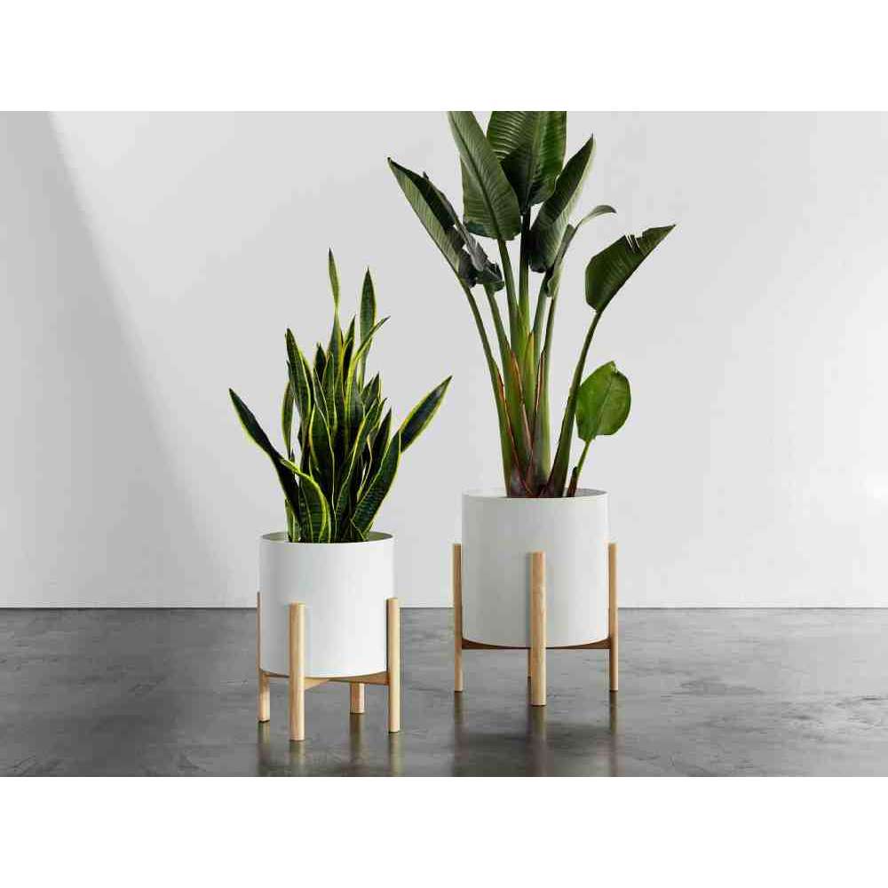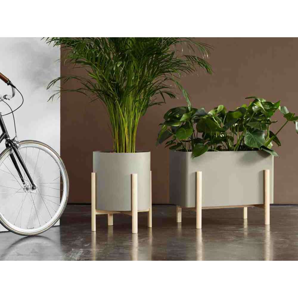ASHI: Jego geometria i proporcje pozwalają nam komponować małe wyspy roślinności i odpoczynku. Naturalne drewno jesionowe. Lakierowana stal nierdzewna.