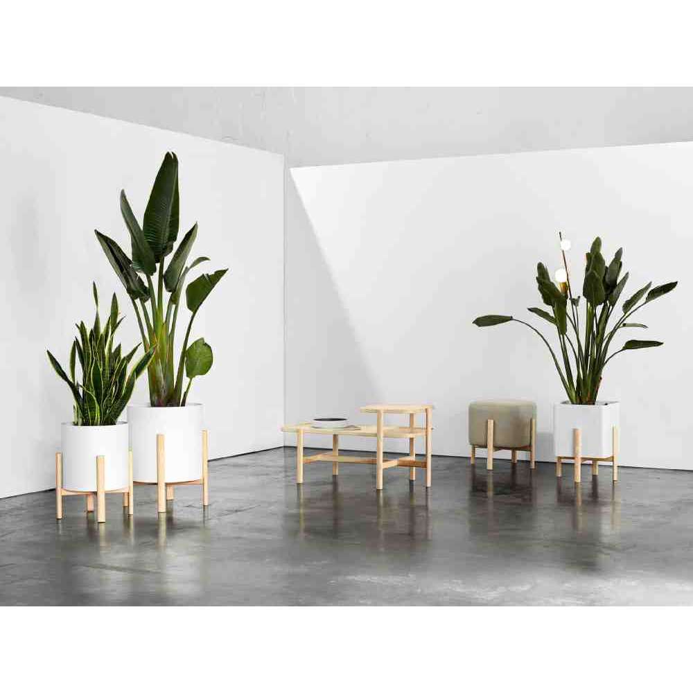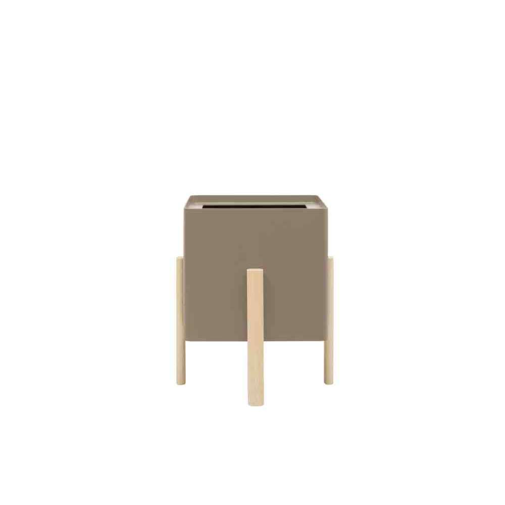 ASHI: Jego geometria i proporcje pozwalają nam komponować małe wyspy roślinności i odpoczynku. Naturalne drewno jesionowe. Lakierowana stal nierdzewna.