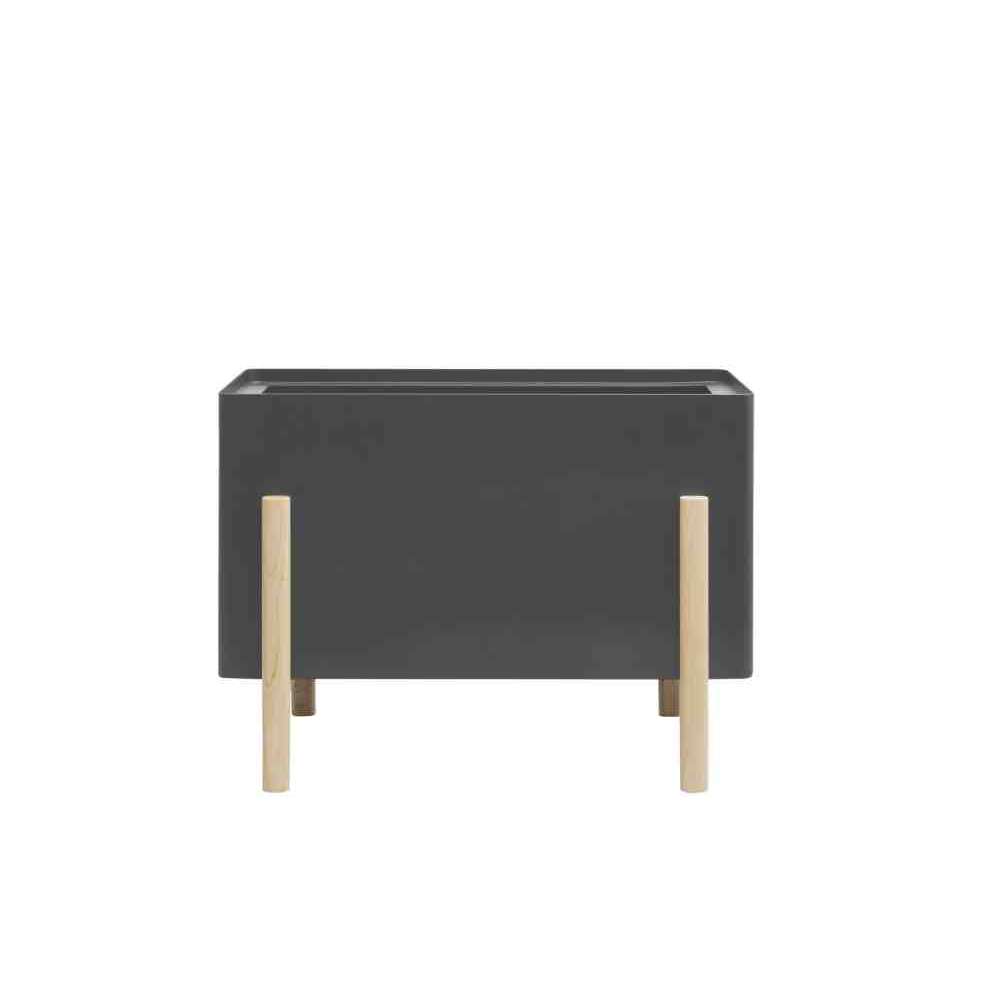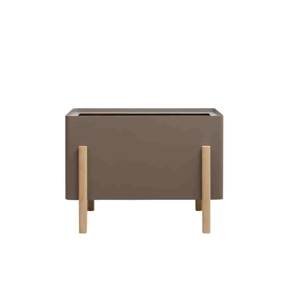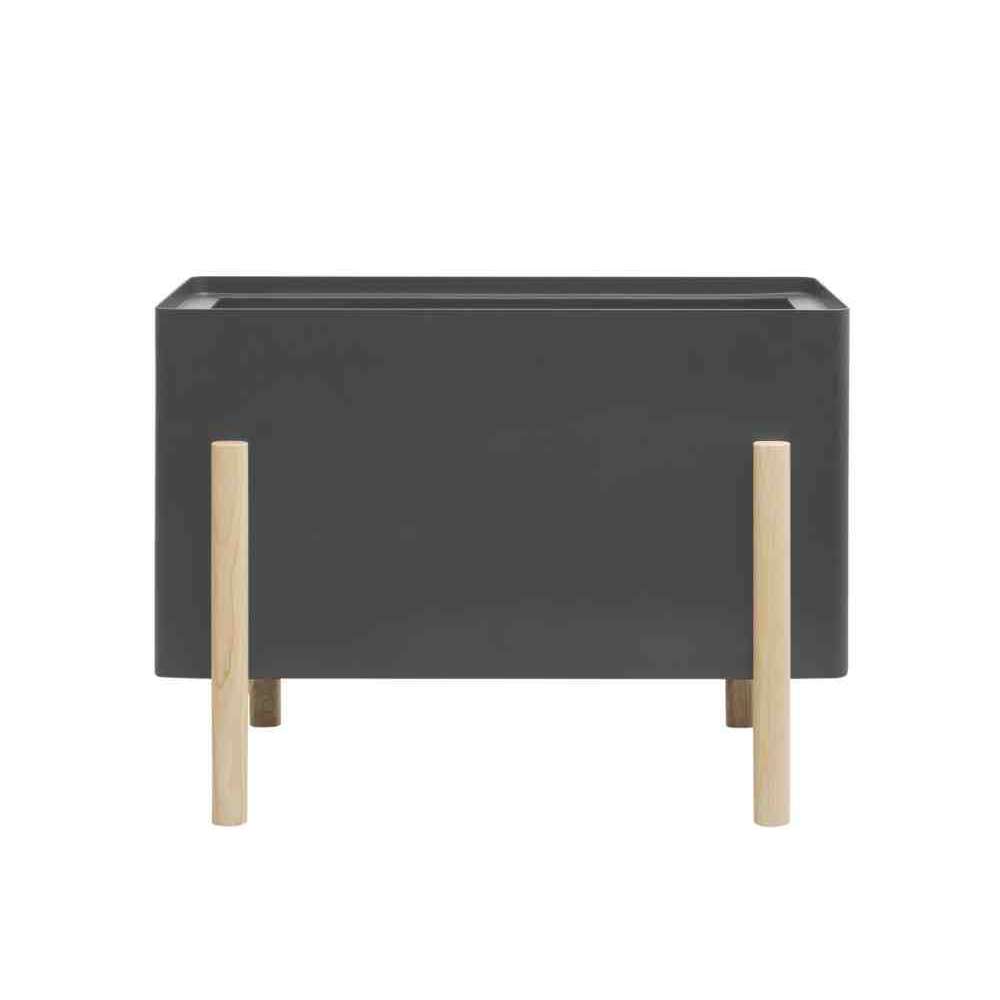 ASHI: Jego geometria i proporcje pozwalają nam komponować małe wyspy roślinności i odpoczynku. Naturalne drewno jesionowe. Lakierowana stal nierdzewna.