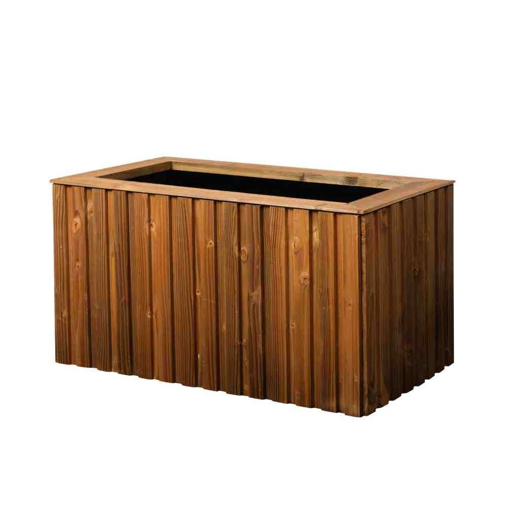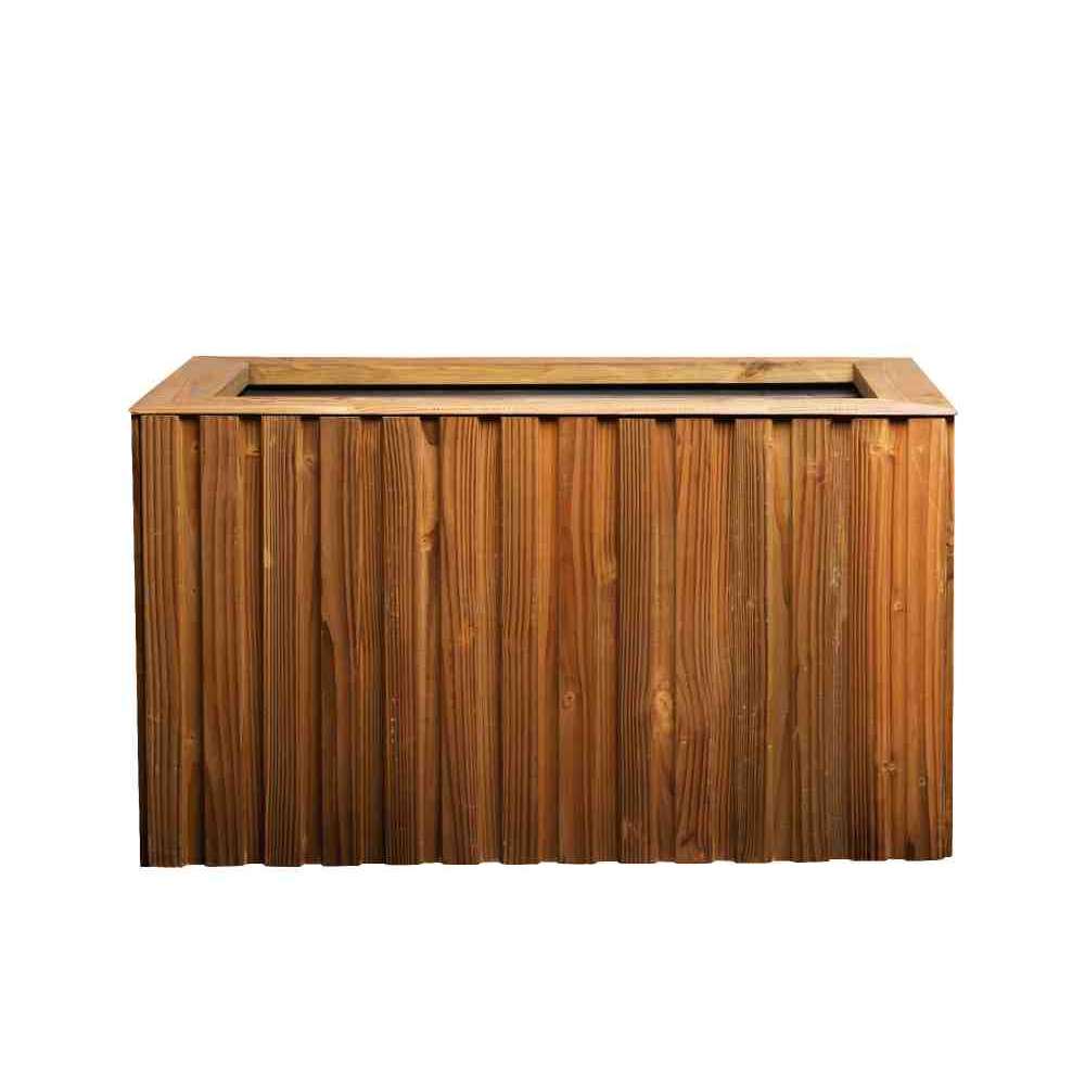 Niska prostokątna doniczka sosnowa z automatycznym nawadnianiem.