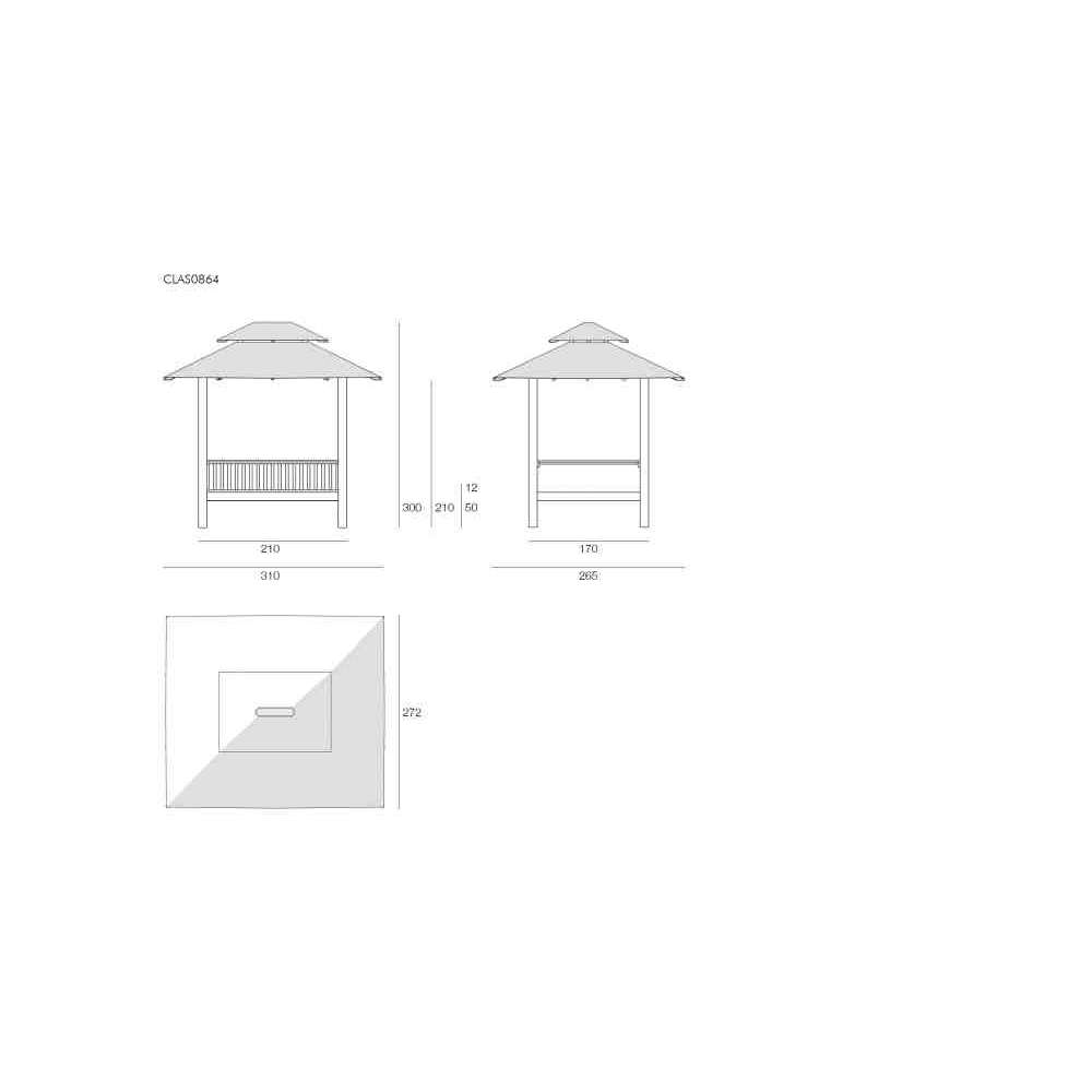 Cabana dla dwóch osób, z dwoma całkowicie niezależnymi leżakami, ale pod tą samą osłoną z listew z drewna tekowego. Podobnie jak reszta linii Classica, ma zasadniczy, ale wydajny i naprawdę elegancki design.