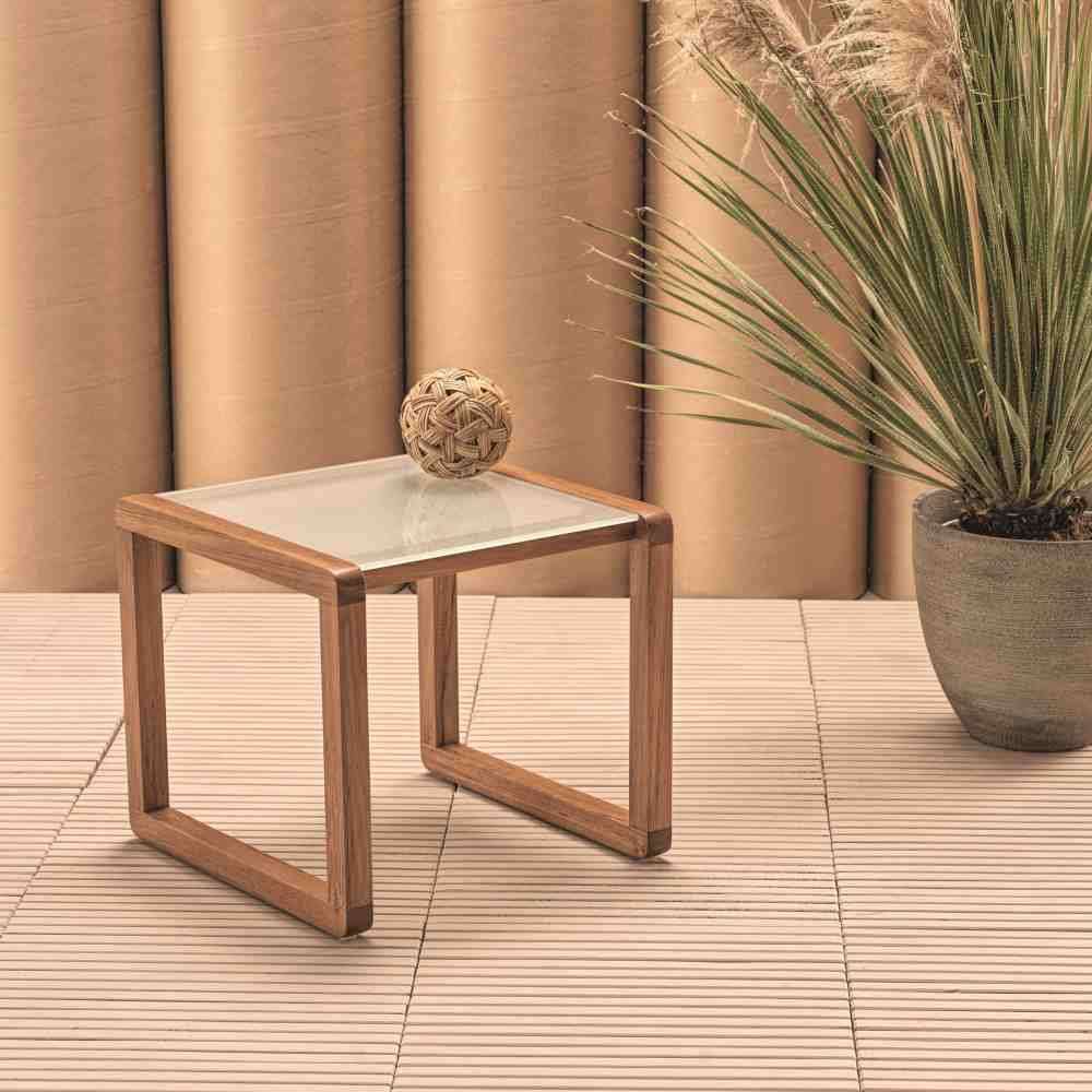 Kwadratowy stolik ogrodowy z drewna i szkła Il Giardino di Legno Dual
