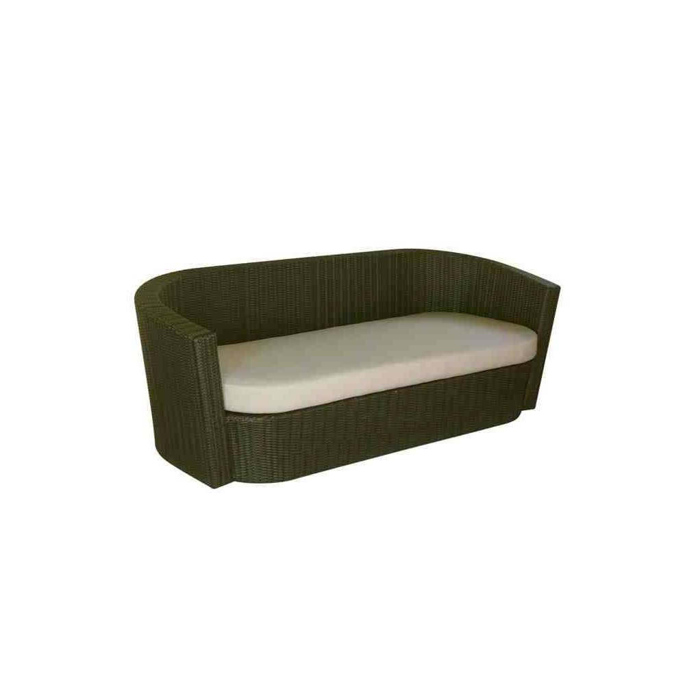 Dzięki zachęcającemu pięknu zaokrąglonego, współczesnego wzornictwa, kolekcja Sentosa wygodnie wpasuje się w wystrój każdego patio. Konstrukcja ramy wewnętrznej wykonana jest z aluminium. Tkane włókno PVC z liści bananowca. Na zamówienie dostępne również w innych wykończeniach i kolorach. Poduszka do użytku na zewnątrz, wykonana z pianki poliuretanowej. Wersja standardowa z tkaninami outdoorowymi Deluxe, kolor Ecru, więcej tkanin i kolorów dostępnych na zamówienie. Wymiary: Szerokość: 205 cm - Głębokość: 95 cm - Wysokość: 76 cm