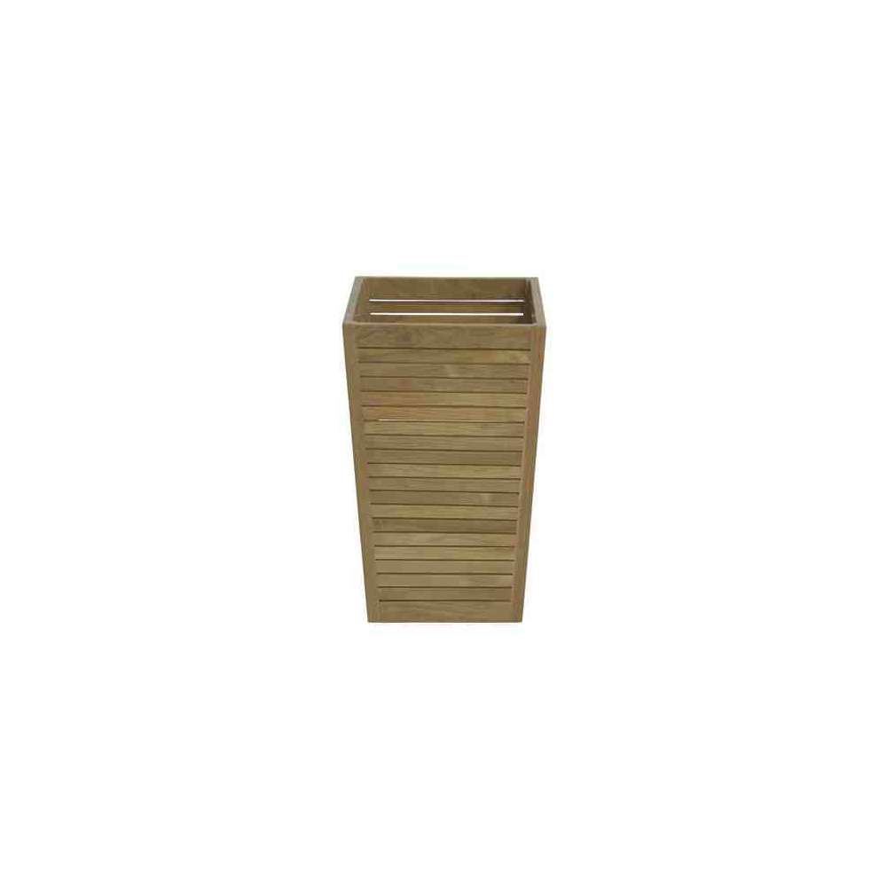 Wysoki, stożkowy garnek z drewna tekowego. W razie potrzeby z ocynkowanymi wkładkami (opcjonalnie). Wykonany z odpornego na warunki atmosferyczne, niewykończonego drewna tekowego z wykończeniem Fine Sanded. Na zamówienie dostępne w różnych wykończeniach.