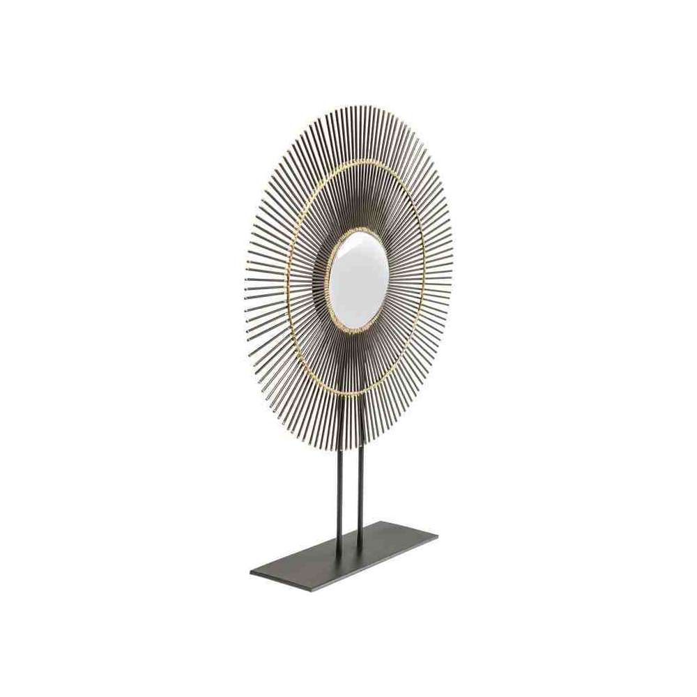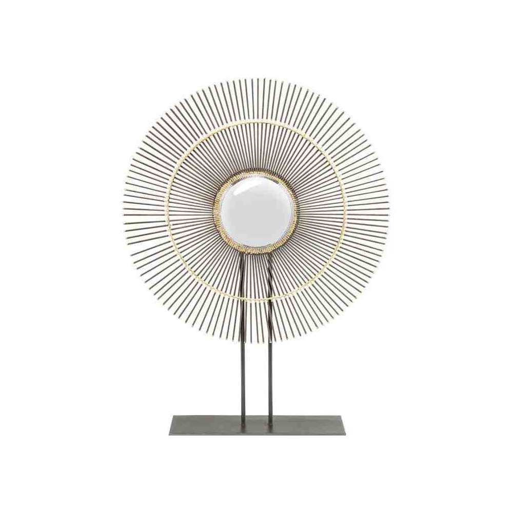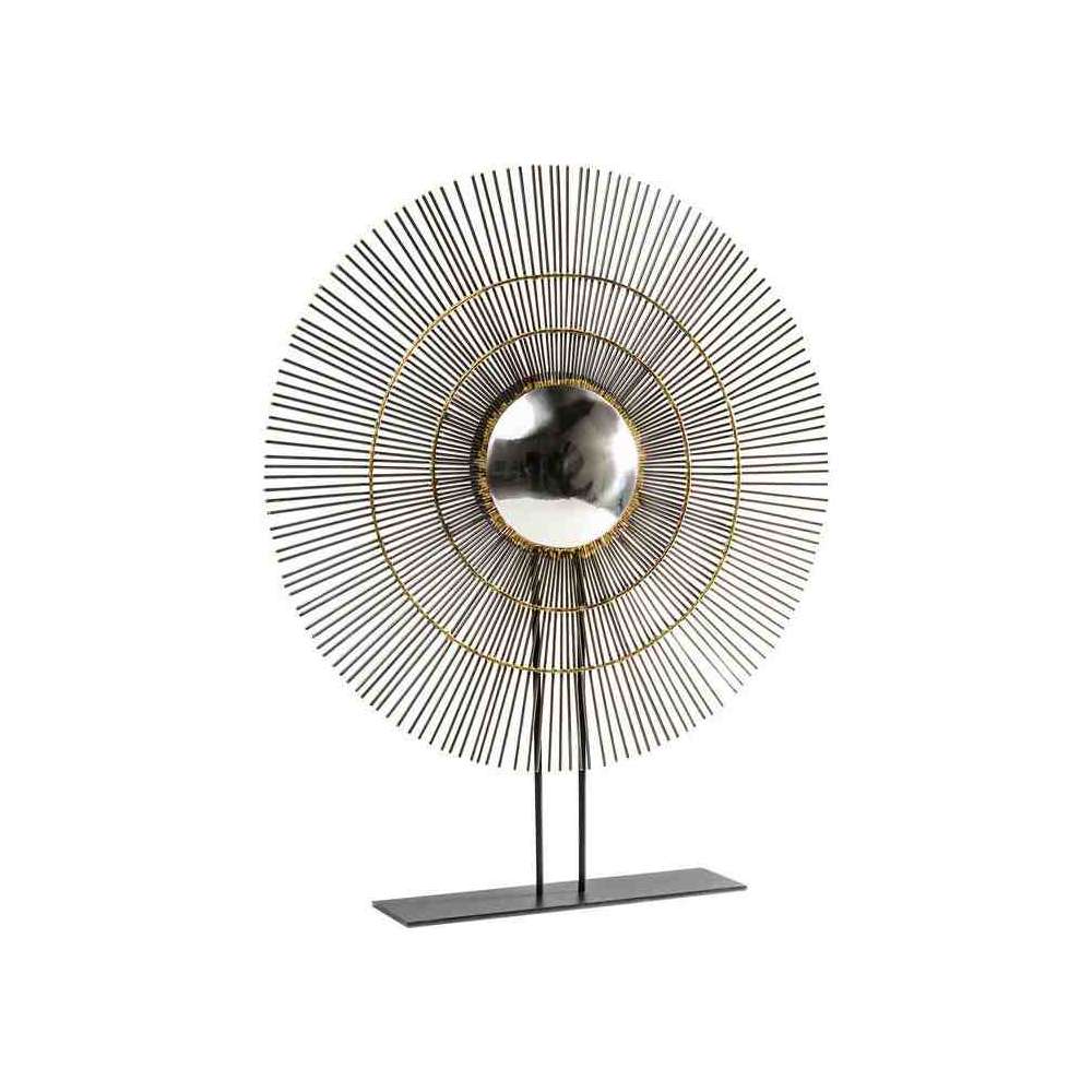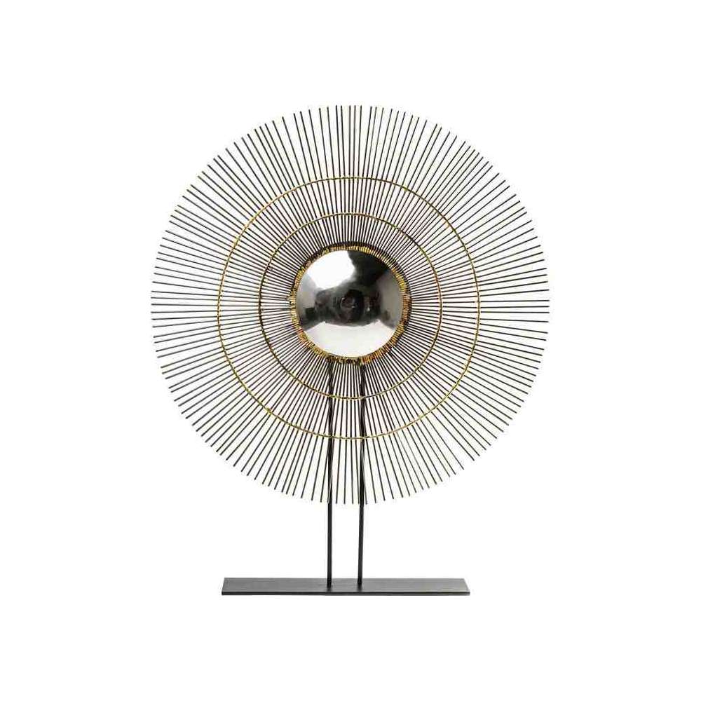 Przedmiot dekoracyjny godny czci. Stalowa rama wyposażona jest w okrągły wachlarz pojedynczych rozpórek ułożonych w okrąg. Złote akcenty sprawiają, że akcesorium błyszczy i rozluźnia design. Figurka dekoracyjna o średnicy 46 cm przyciąga wzrok i nie wydaje się zbyt masywna. Kolejne wersje dostępne w serii.