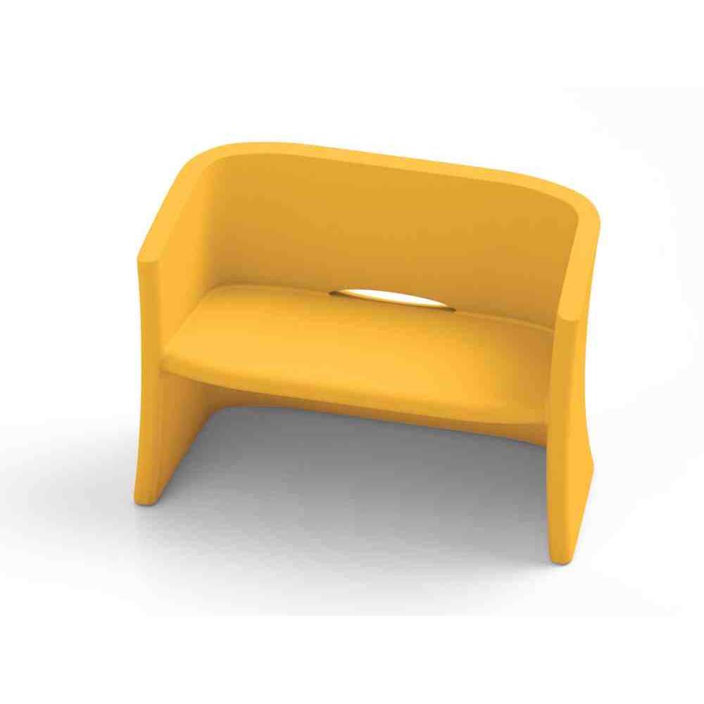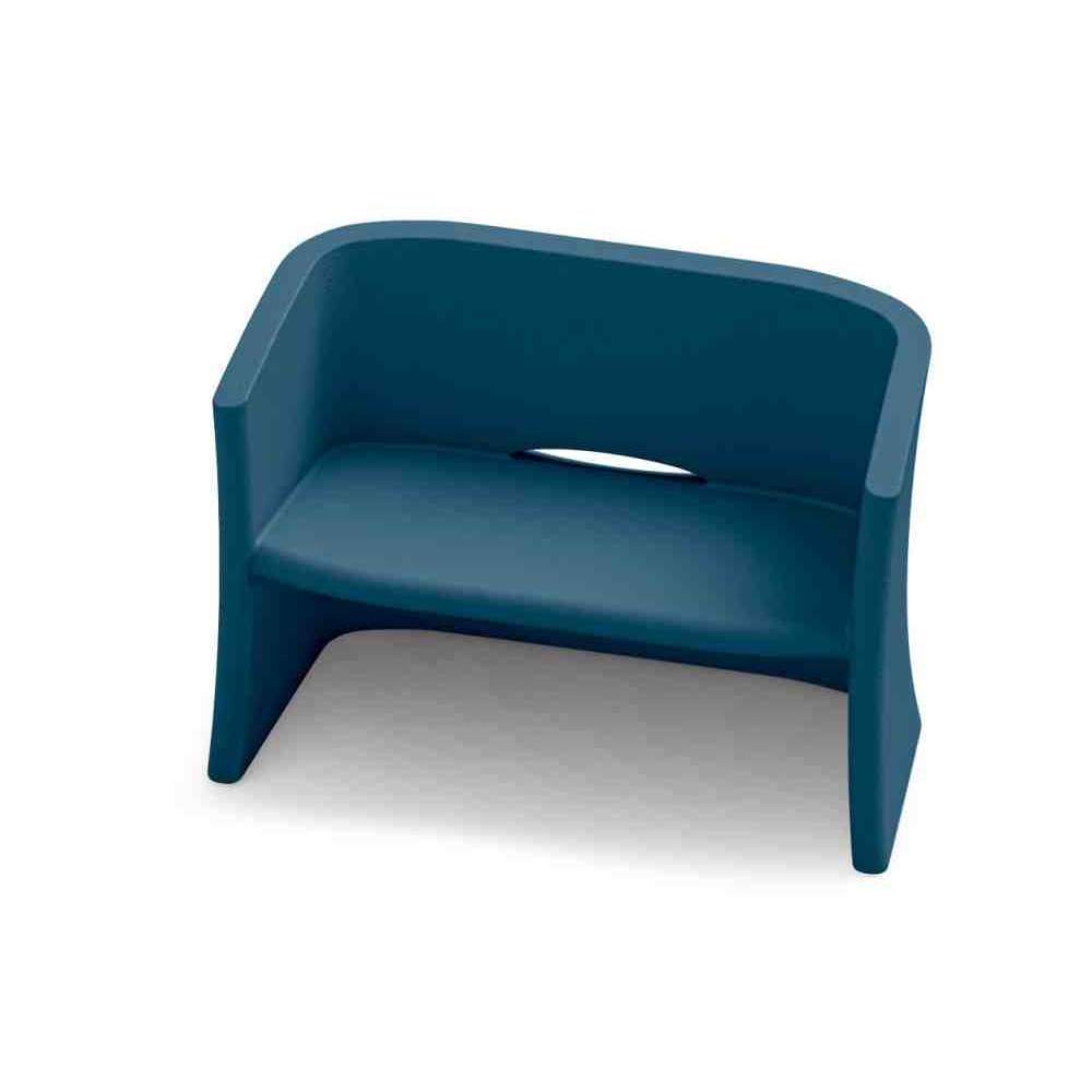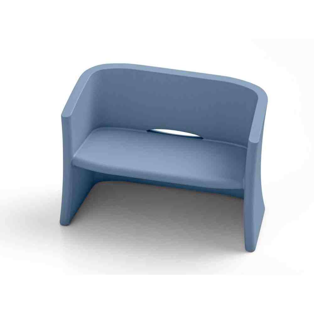 Dwuosobowa sofa charakteryzująca się miękką linią podłokietników, doskonały kompromis między stylem nowoczesnym i współczesnym. Nadaje się również do wyposażenia obiektów kąpielowych, barów i ogólnie przedsiębiorstw publicznych, ponieważ nie jest narażony na działanie czynników atmosferycznych, soli i światła słonecznego. Odpływ między siedziskiem a oparciem umożliwia odprowadzenie wody deszczowej.
