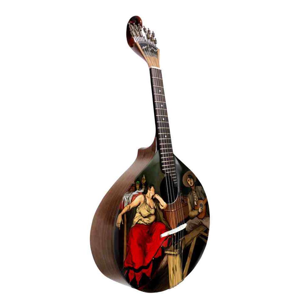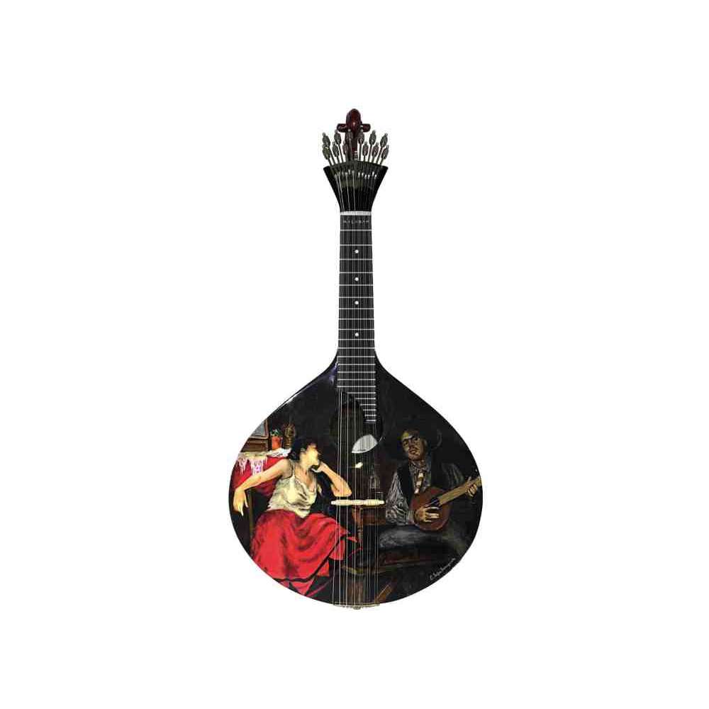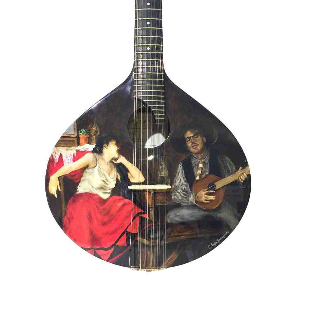 Kiedy śpiewa się Fado, świat słyszy pasje, saudade i złamane serca w życiu. Fado to gatunek muzyczny, który można prześledzić do lat 20. XIX wieku w Lizbonie w Portugalii, ale prawdopodobnie ma znacznie wcześniejsze początki. To jest dusza Portugalczyków, przepisana na portugalską gitarę za pomocą obrazu, który wyraża portugalską rzeczywistość. Namalowany przez José Vitala Branco Malhoa, znanego po prostu jako José Malhoa w 1910 roku, ten utwór wyraża uczucia z tawern po piosenki, które opowiadają historie w melancholijnych wersetach znanych jako Fado i które zainspirowały tę gitarę.