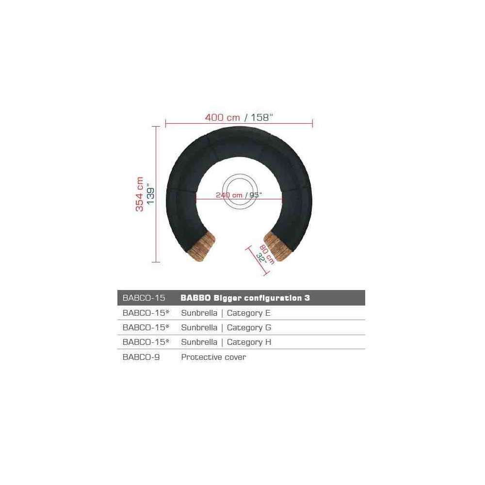 Konfiguracja BABBO 3 to modułowa, zakrzywiona sofa do użytku na zewnątrz ze strukturą z drewna tekowego i tapicerką siedzeń z tkaniny Sunbrella®.