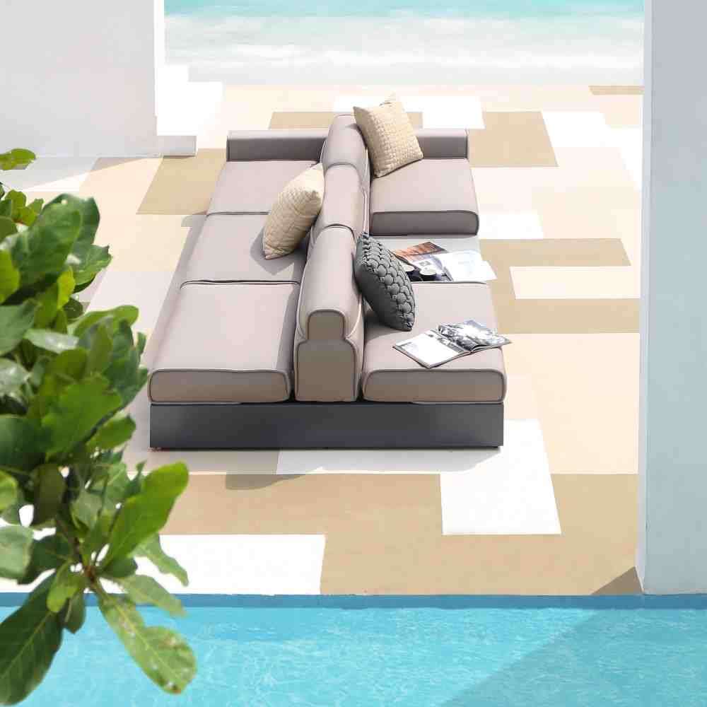 Modułowa dwustronna sofa ogrodowa z materiału Sunbrella® Mamagreen Boulevard DOUBLE SIDED CONFIGURATION 1