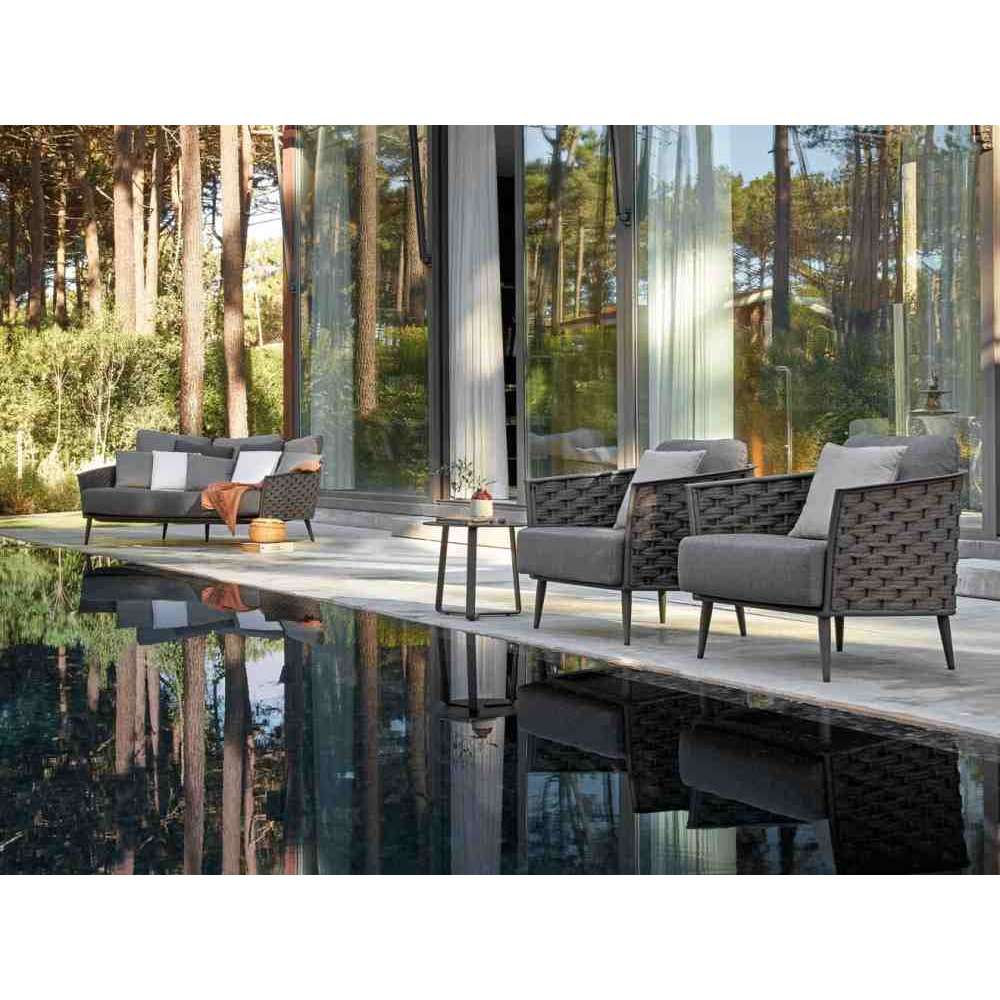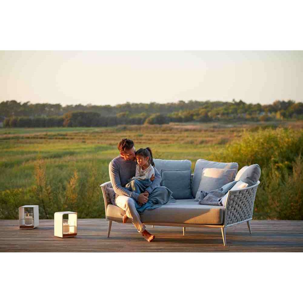 Dzięki przestronnym siedziskom Cascade tworzy idealny fotel wypoczynkowy. Wykończone intrygującą mieszanką malowanego proszkowo aluminium i grubej tkanej liny, 1-osobowa sofa Cascade, leżanka i 2/3-osobowa sofa emanują stylem i wygodą. Przy basenie lub na tarasie kolekcja Cascade oferuje luksusowe doznania podczas relaksujących dni i przytulnych nocy. Lawa i antracyt czy biel i srebro? Obie kombinacje doskonale komponują się z poduszkami dekoracyjnymi Cascade.