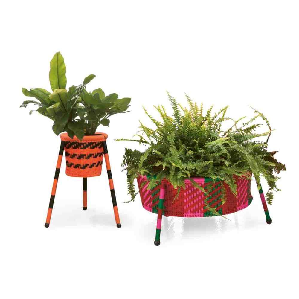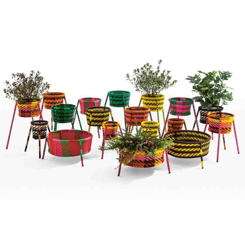 Malowane stalowe i polietylenowe ręcznie plecione kosze na nici Moroso JARDIN SUSPENDU