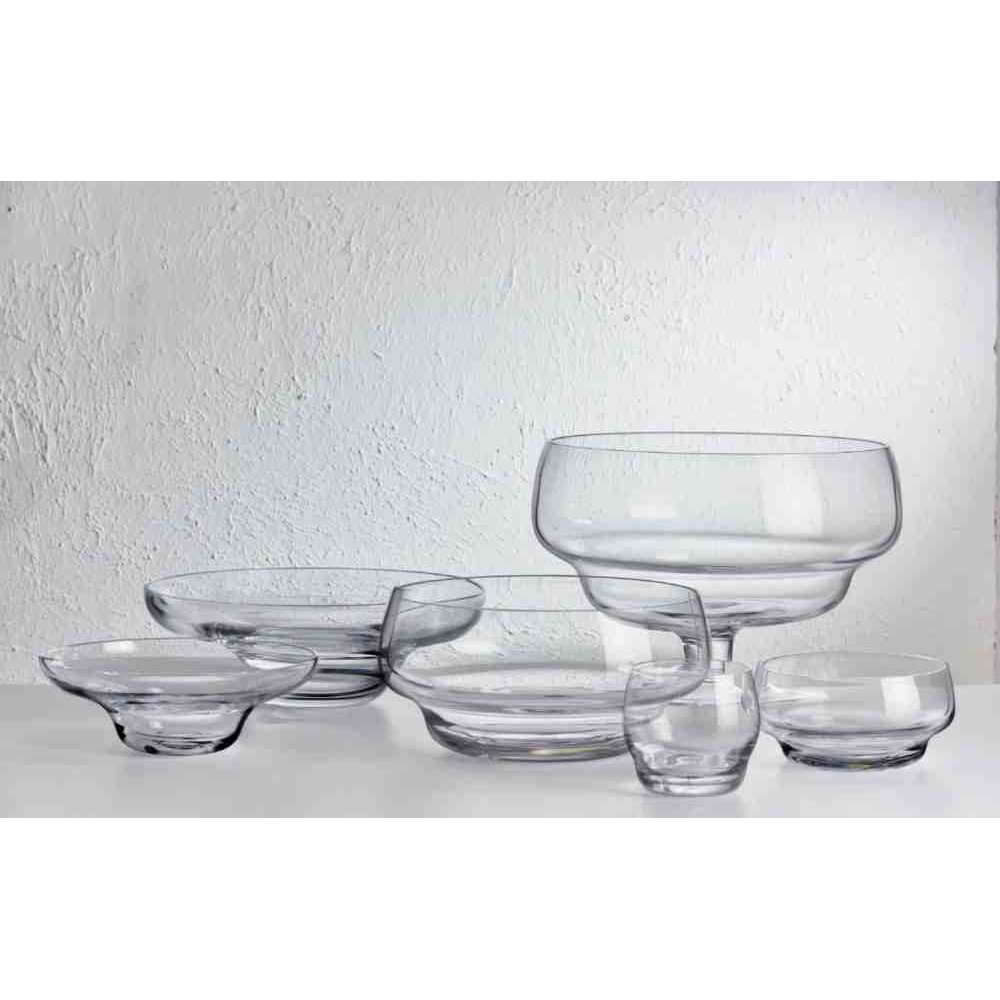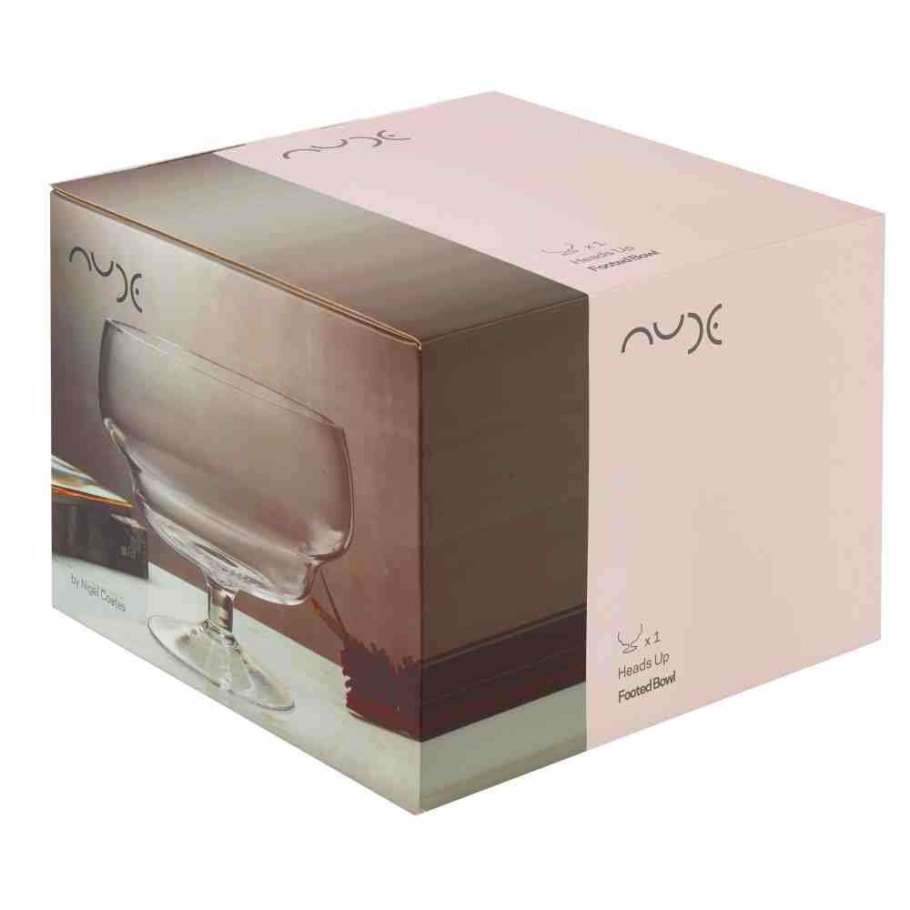 Kwartet okularów zaprojektowany przez zawsze stylowego Anglika Nigela Coatesa. Wybór, podobnie jak sam projektant, jest pewny siebie, uroczy, a jednocześnie wybitnie użyteczny. Ręcznie dmuchany kubek jest sprytnie żłobiony, prawie zachęcając użytkownika do trzymania go w dłoni. Kieliszki do wina są również niezwykle dotykowe. Kieliszek do szampana jest tak czarujący jak sukienka koktajlowa i domaga się podziwu. Heads Up to jednocześnie zabawna, ale wyrafinowana seria, która jest cudownie indywidualna i niezapomniana. Brytyjski projektant Nigel Coates jest znany ze swojej elegancji i stylu. Ale jak wszyscy najlepsi Anglicy, ma też cierpkie poczucie humoru. Jego kolekcja Heads Up, zaprojektowana specjalnie dla NUDE, zawiera wszystkie te elementy. Podwójna krzywizna wzoru igra ze światłem, gruba podstawa każdego elementu tworzy wrażenie, że każdy element unosi się w powietrzu. Każda pozycja zawiera w sobie ten sam element zmysłowości i lekkości, miseczki doskonale równoważą męskość i kobiecość.