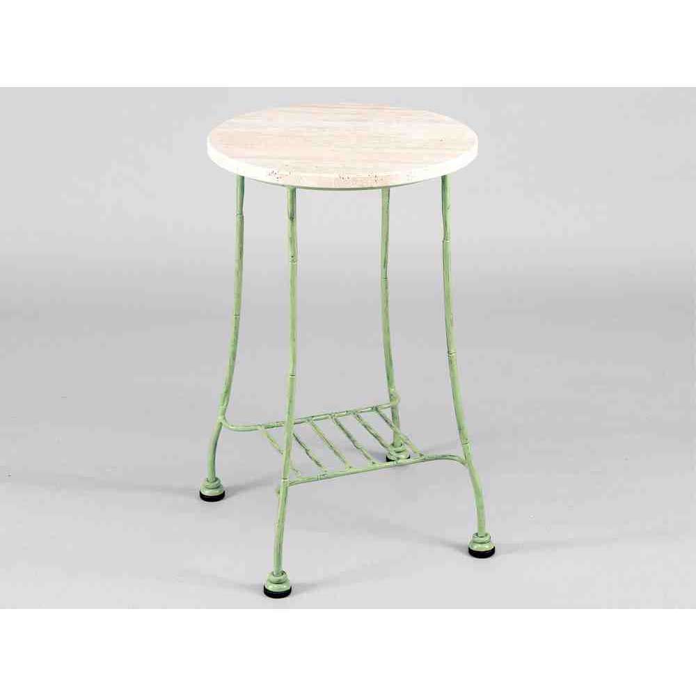 BAMBOO GF4012TA-S to żelazny okrągły stół z marmurowym blatem Travertino, ocynkowanym i malowanym proszkowo.
