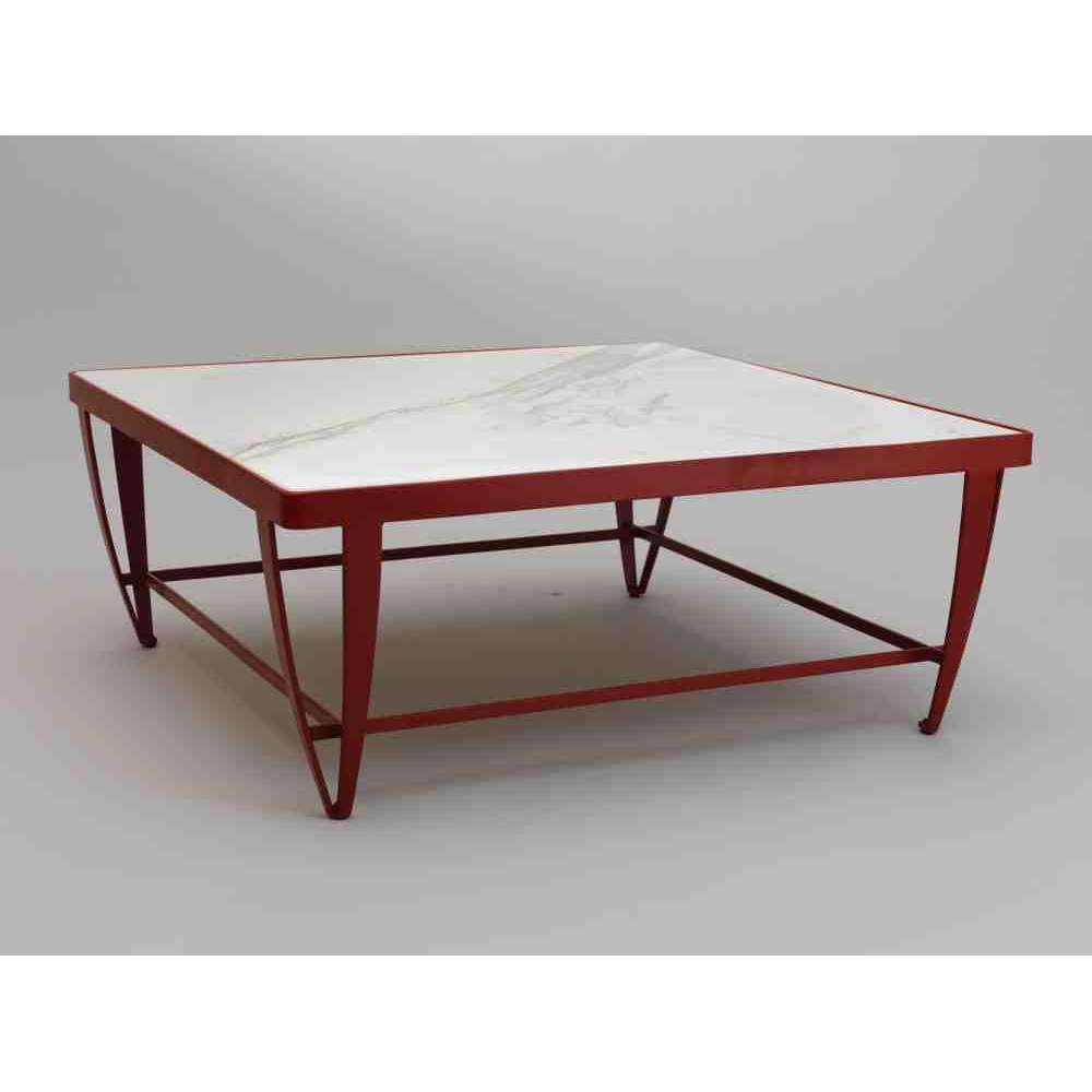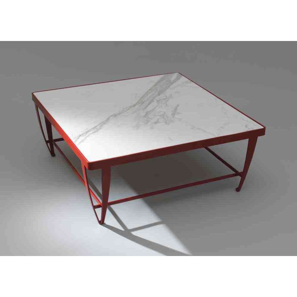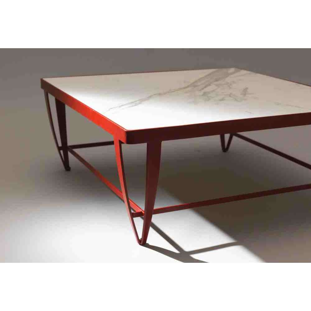 Zig Zag to kwadratowy stolik kawowy z żelaza z blatem z marmuru Statuario, ocynkowanym i malowanym proszkowo.