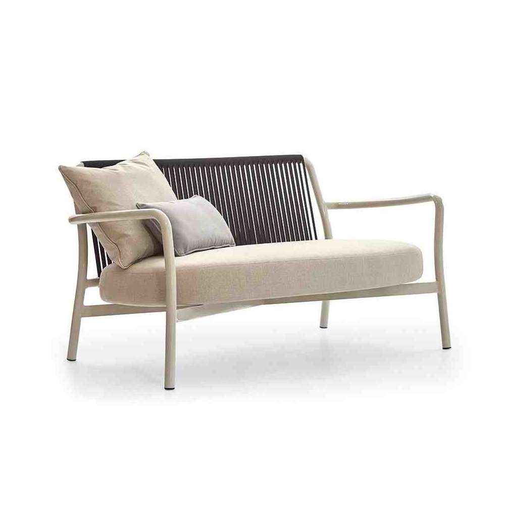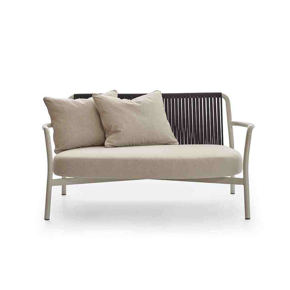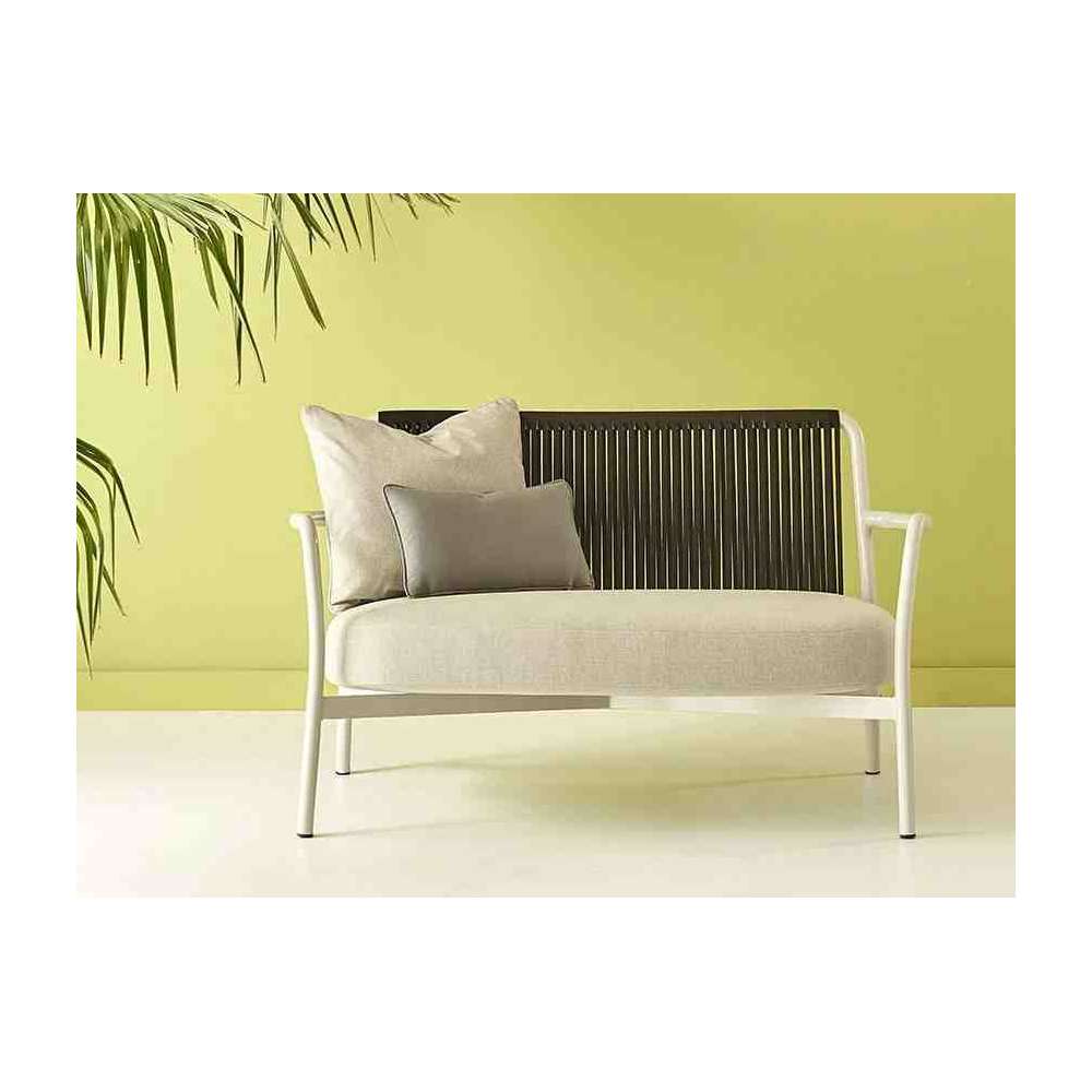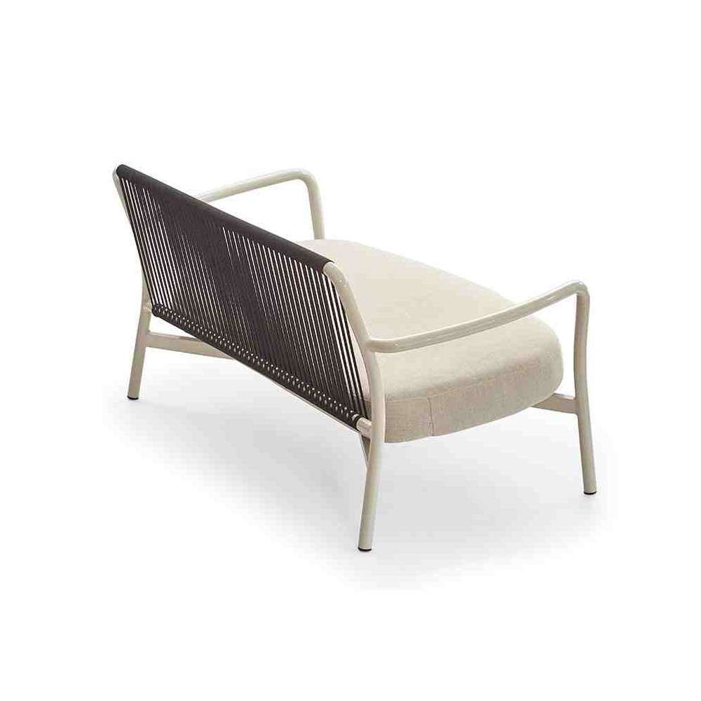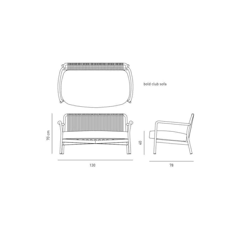 BOLD CLUB to sofa o konstrukcji aluminiowej malowanej proszkowo, tkanej poliestrową liną, tapicerowanym siedziskiem i poduszką oparcia.