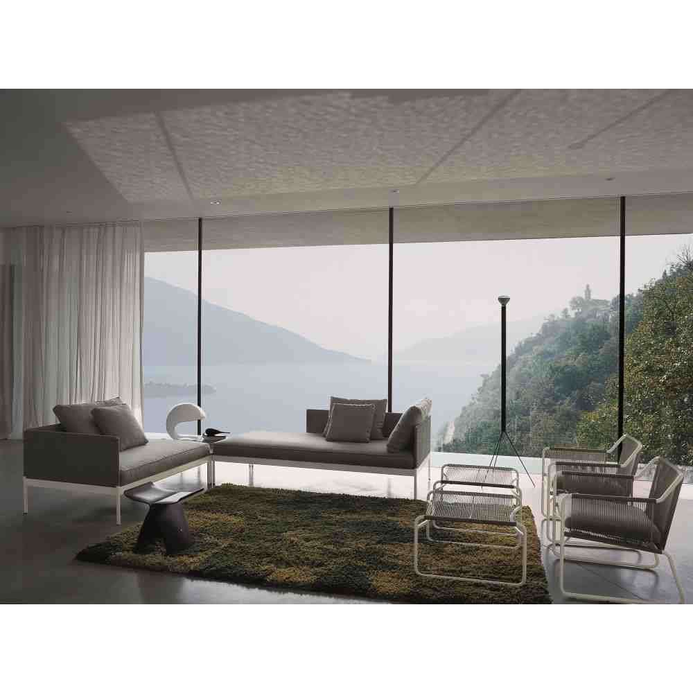 Kolekcja BASKET składa się z modułowych sof składających się z podstawy dostępnej w czterech rozmiarach, które można używać samodzielnie, jako podnóżek lub w połączeniu z liniowymi lub kanciastymi oparciami, tworząc wiele kombinacji. Solidność konstrukcji i surowy design oparć, wykonanych z przeplatanych pasków, zachowują smukły wygląd, równoważony komfortem niezwykle przytulnych poduszek.