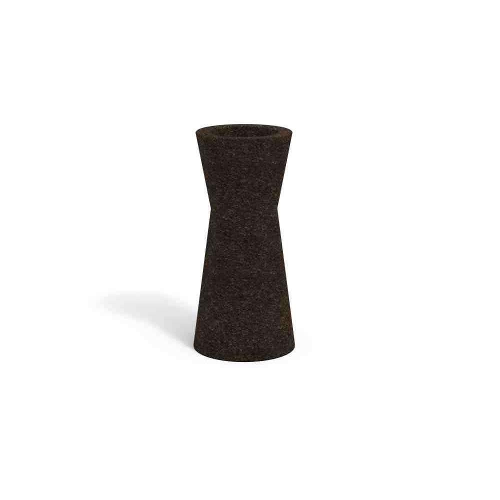 Bardzo duże donice jako hołd projektowy dla całkowicie naturalnego i ekologicznie zrównoważonego materiału. Wykonane z wysokiej jakości ekspandowanego czarnego korka, wyróżniają się wyważoną objętością i starannie czystymi liniami. Dzięki gustowności i prostocie, trzy różne kształty klepsydry mają trzy rozmiary, gotowe do użycia pojedynczo lub harmonijnie połączone, aby pomieścić i wyrównać rośliny i kwiaty. Przyjemne w dotyku dzięki specjalnej fakturze. Pokryte od wewnątrz wodoodpornym kauczukiem naturalnym, te wazony przyciągają wzrok jako niezwykłe elementy dekoracyjne o wspaniałym charakterze dla zielonego życia.