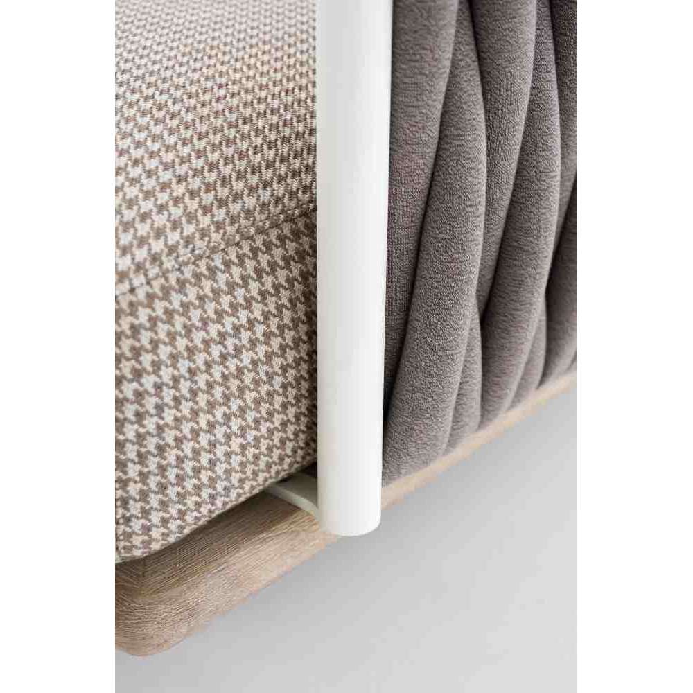 W historii RODA to pierwsza kolekcja sof, w której zastosowano konstrukcję łączącą w tak innowacyjny i harmonijny sposób dwa wyróżniające się materiały: drewno tekowe i malowaną stal nierdzewną.