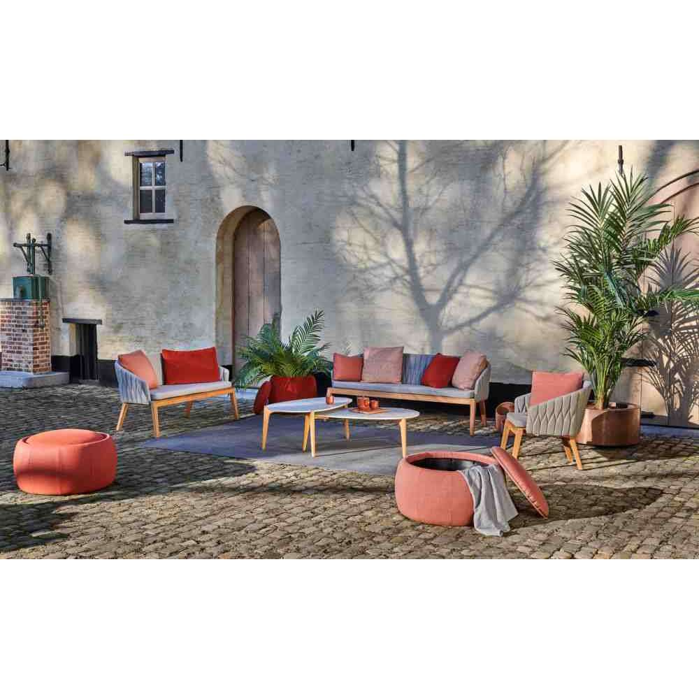 Royal Botania, Kris Van Puyvelde, Calypso, meble ogrodowe, sofy ogrodowe, sofy ogrodowe, sofy ogrodowe w stylu współczesnym, sofy ogrodowe z tkaniny, sofy ogrodowe z drewna, sofy ogrodowe z drewna tekowego, sofy ogrodowe 3-osobowe, sofy ogrodowe tapicerowane, sofy ogrodowe ze zdejmowaną osłoną