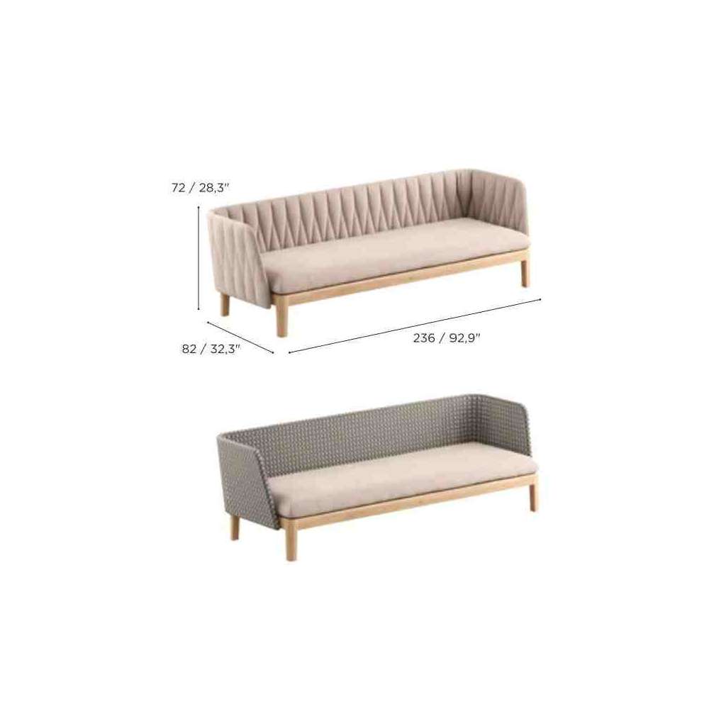 3-osobowa sofa ogrodowa z tkaniny i drewna tekowego ze zdejmowanym pokrowcem Royal Botania Calypso Lounge