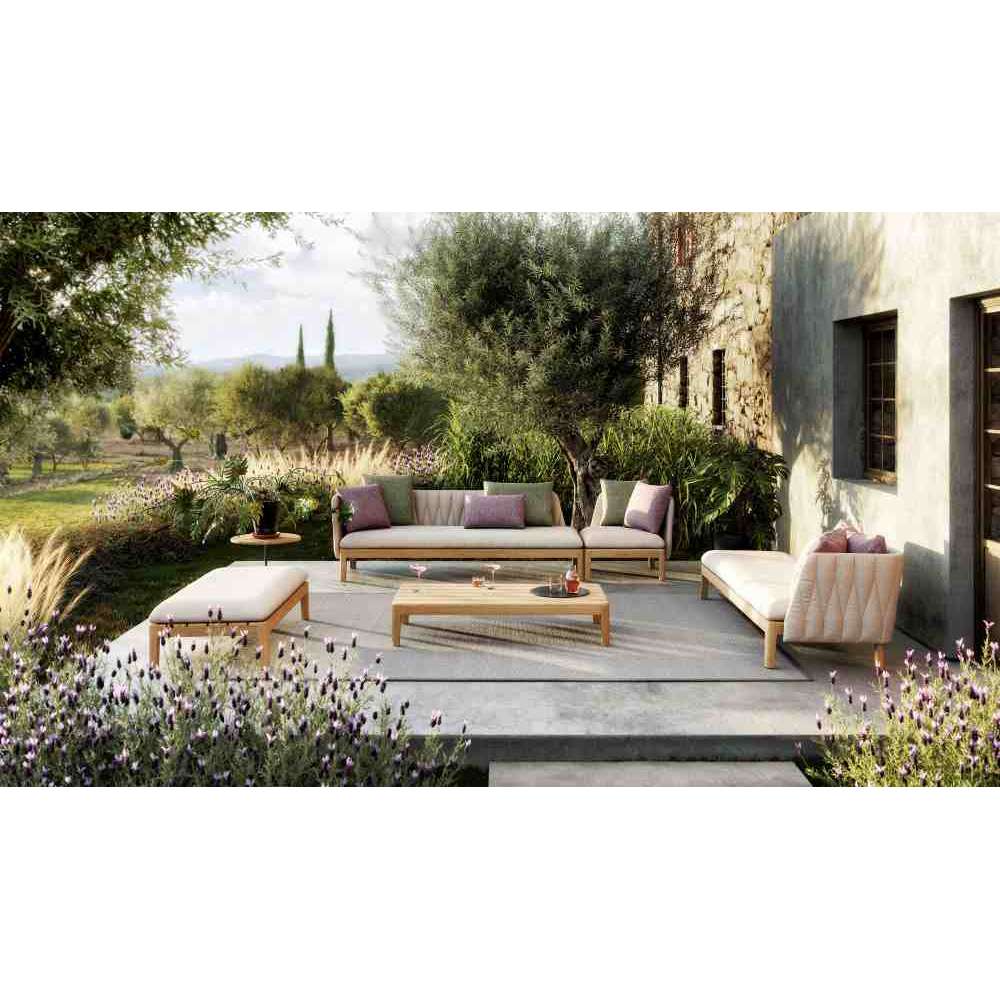 Ławka ogrodowa z tkaniny i drewna tekowego ze zdejmowanym pokryciem Royal Botania Calypso Lounge