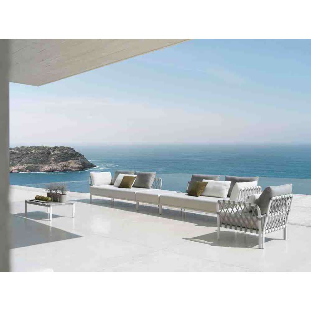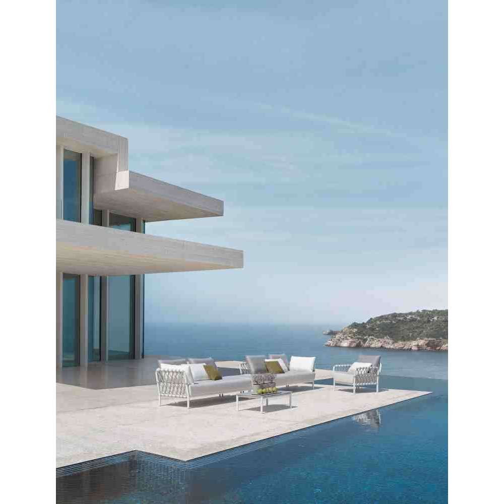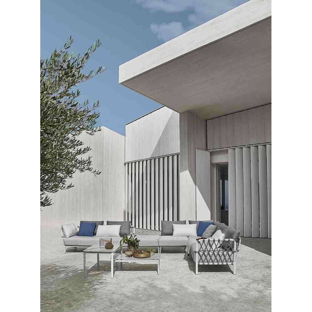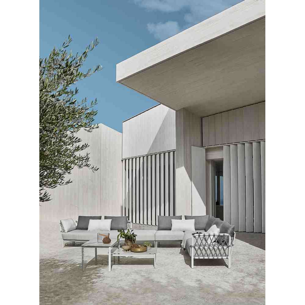 Czy to przy basenie, czy na tarasie, CARO Outdoor Lounge oferuje luksusowe siedzenia na relaksujące dni lub przytulne letnie wieczory, nie pozostawiając nic do życzenia, jeśli chodzi o dobre samopoczucie i komfort. Pokryte antracytowym wykończeniem aluminiowe ramy CARO charakteryzują się zaokrągloną sylwetką, delikatnie przeplatanymi filigranowymi splotami wykonanymi z plenerowej liny String Flex i doskonale uzupełniają luksusowe poduszki do siedzenia i wygodne poduszki do rzucania. Dwa stoliki o różnej wysokości z optycznie jasnymi blatami w różnych kolorach ceramiki nadają całości wykończenia.