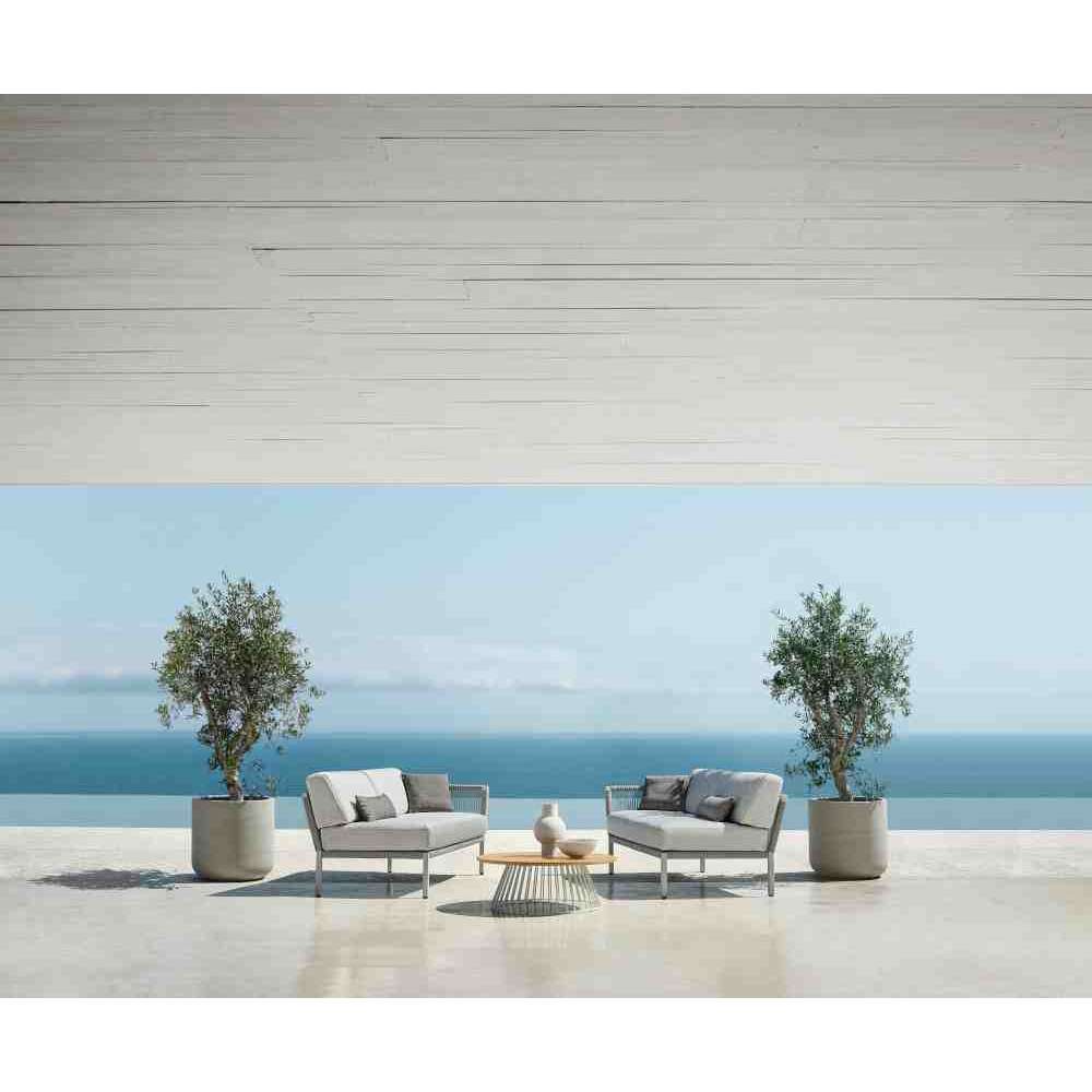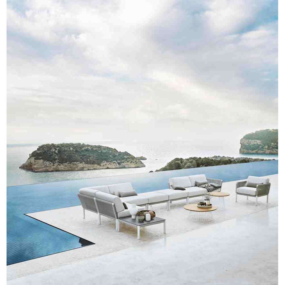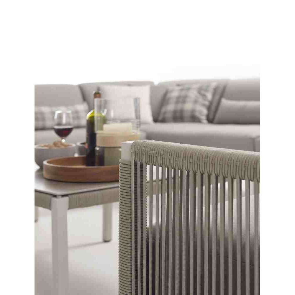 Projekt serii CLUB charakteryzuje się otwartym splotem wykonanym z jednego miękkiego w dotyku sznurka, który jest podtrzymywany przez prostą aluminiową ramę. Dzięki nowoczesnemu splotowi podłużnemu i przytulnym poduszkom, projekt zapewnia solidną lekkość.