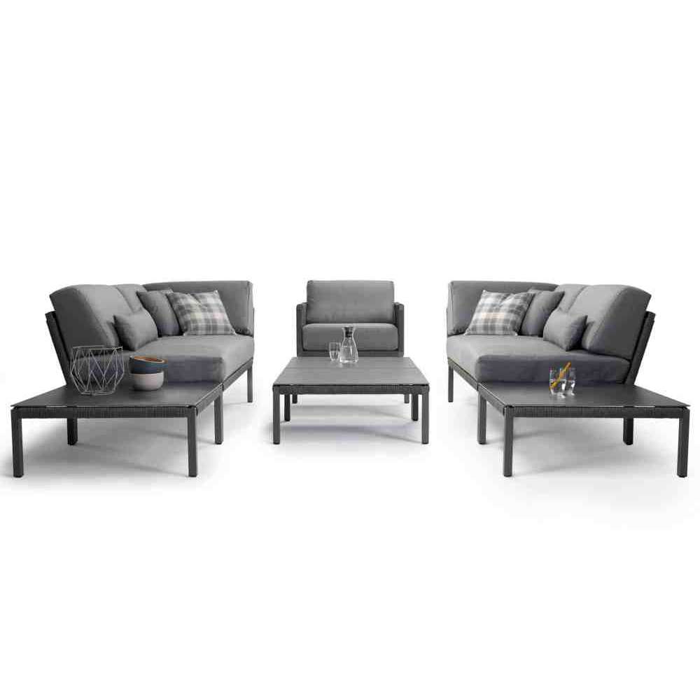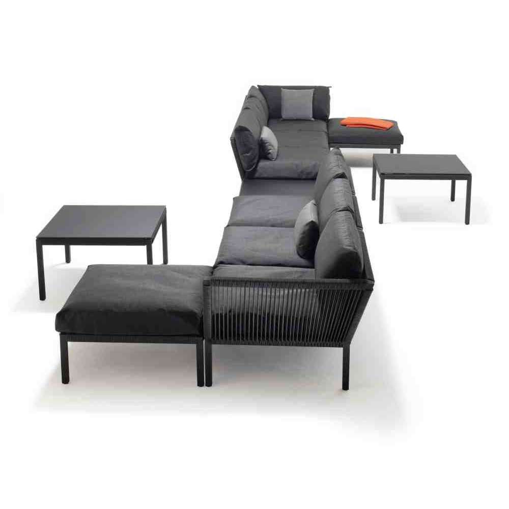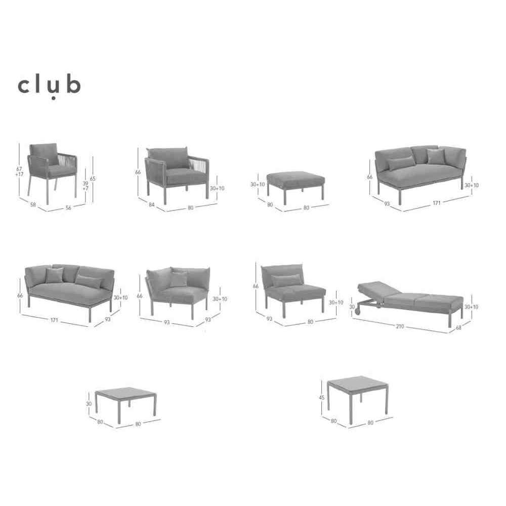 Projekt serii CLUB charakteryzuje się otwartym splotem wykonanym z jednego miękkiego w dotyku sznurka, który jest podtrzymywany przez prostą aluminiową ramę. Dzięki nowoczesnemu splotowi podłużnemu i przytulnym poduszkom, projekt zapewnia solidną lekkość.