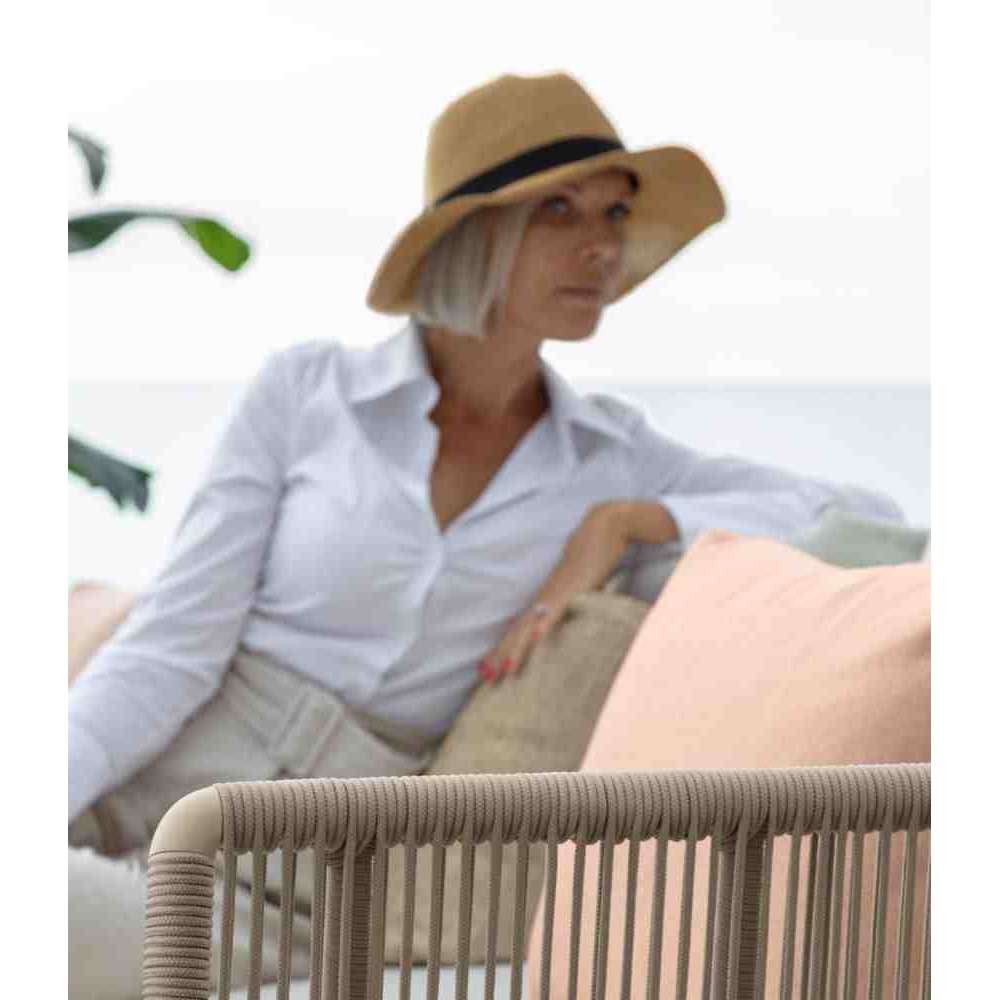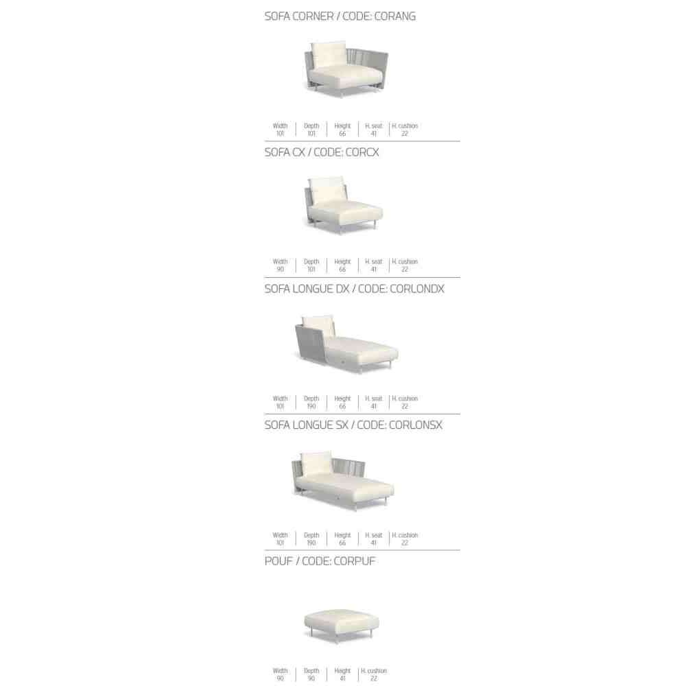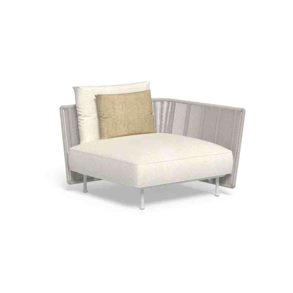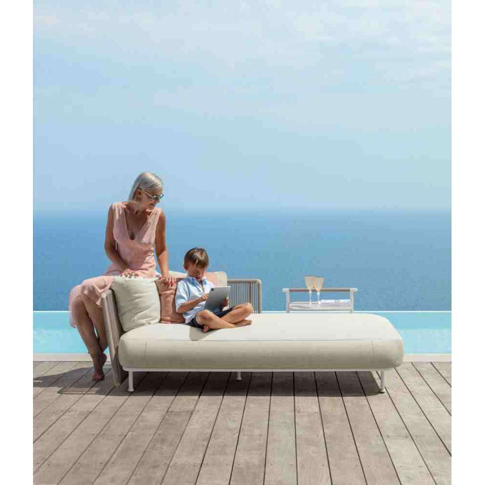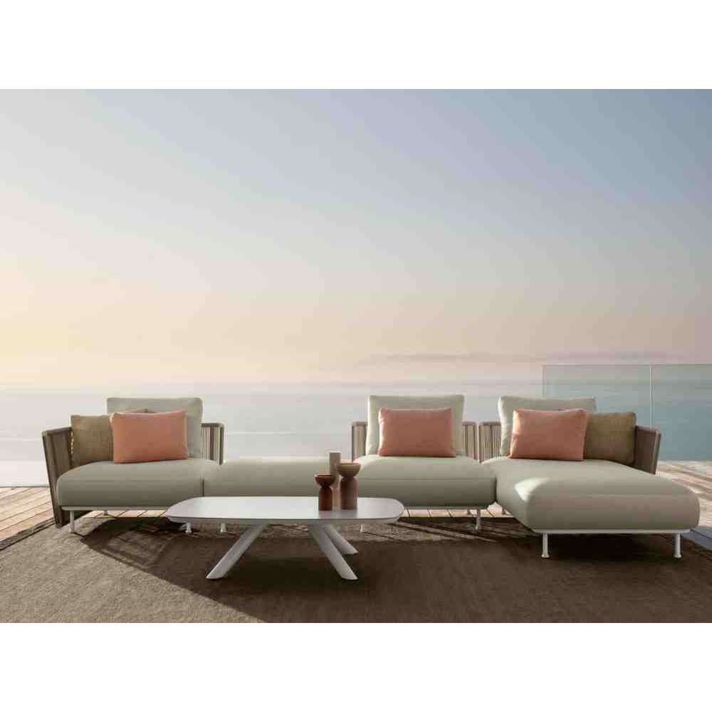 Modułowa sofa Coral umożliwia tworzenie eleganckich i kreatywnych kombinacji sof, które dodają charakteru Twojej przestrzeni na zewnątrz. Czyste i wyważone geometrie, które charakteryzują całą kolekcję, podkreślają lekką i minimalistyczną aluminiową ramę, idealnie dopasowaną do oparcia i podłokietników z syntetycznej liny. Poduszki, odporne na warunki atmosferyczne, ze zdejmowanymi poszewkami, upiększają produkt swoją pokaźną i przyjazną objętością oraz starannie dobranymi tkaninami. Poduszki dekoracyjne, dostępne w szerokiej gamie kolorystycznej, personalizują i zmiękczają produkt, zmieniając przestrzeń zewnętrzną w wyjątkową strefę życia.