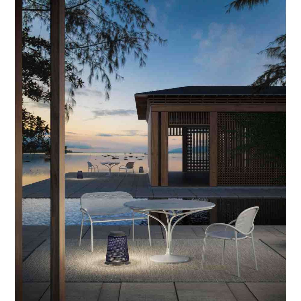 Les Arcs to aluminiowa ławka ogrodowa z podłokietnikami i oparciem. W rzeczywistości wybrano aluminium, niezwykle lekki i nadający się do recyklingu, wydajny i plastyczny materiał o nowoczesnych i przyjaznych dla środowiska właściwościach, który w ten sposób rewolucjonizuje styl i praktyczność Les Arcs.