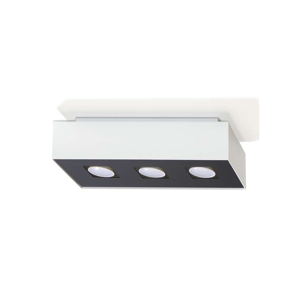 Źródło światła: GU10 3 x max. 40 W, 50 Hz, 220, IP20. Żarówka nie jest wliczony w cenę. Wymiary: 11 x 34 x 14 cm Materiał: Stal Kolor: biały / czarny