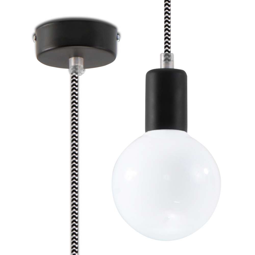 Źródło światła: E27, 1 x max. 60 W, 50 Hz, 220, IP20. Żarówka nie jest wliczony w cenę. Rozmiar: 8 x 8 x max. 100 cm Materiał: Drut stalowy opleciony Kolor: czarny / biały