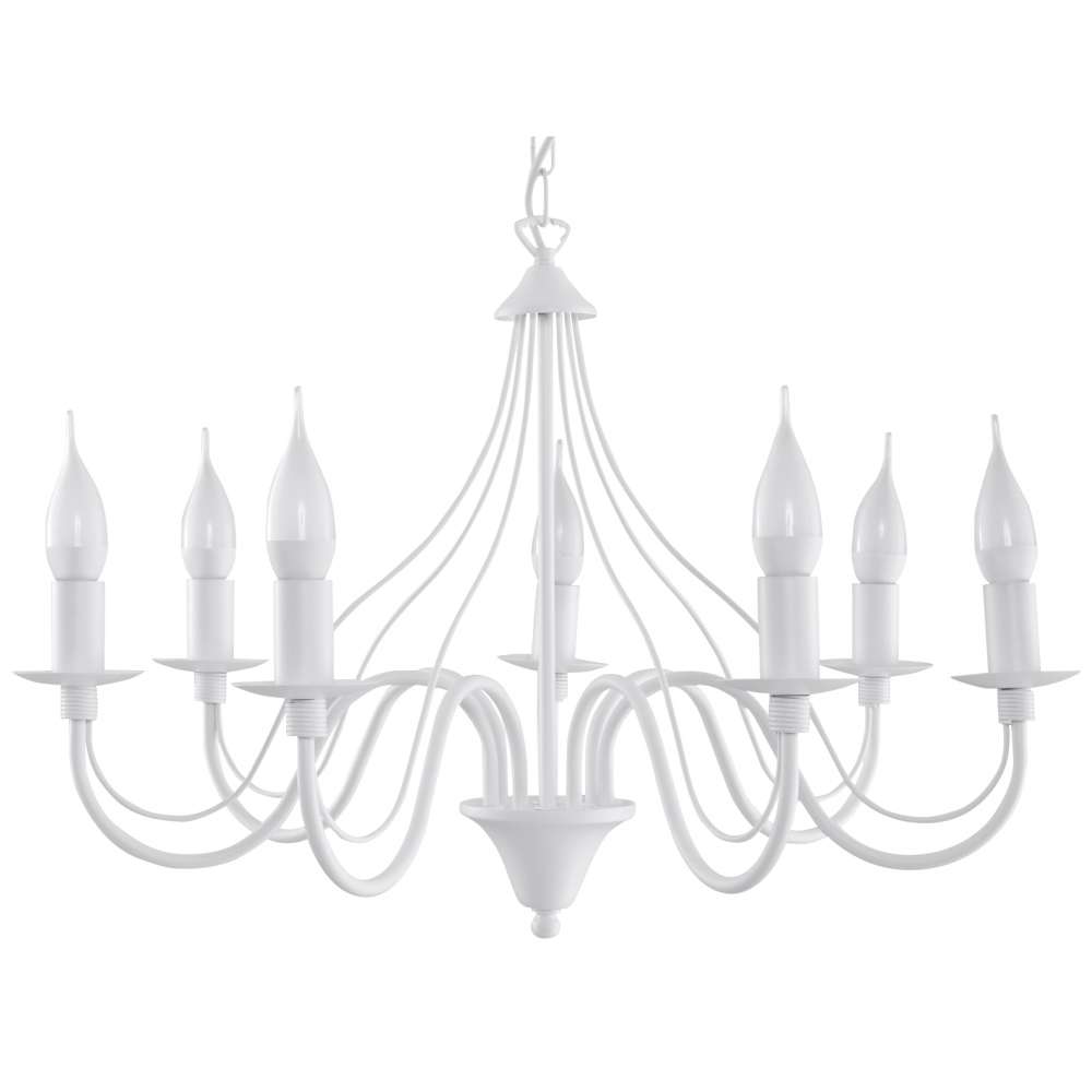 Źródło światła: E14, 7 x max. 40 W, 50 Hz, 220, IP20. Żarówka nie jest wliczony w cenę. Wymiary: 60 x 60 x max. 80 cm Materiał: metal Kolor: biały