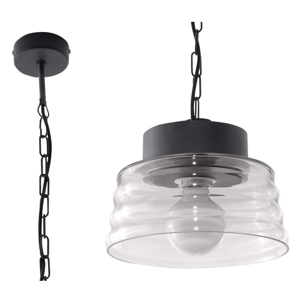 Źródło światła: E27, 1 x max. 60 W, 50 Hz, 220, IP20. Żarówka nie jest wliczony w cenę. Wymiary: 25 x 25 x max. 80 cm Materiał: stal / Szkło Kolor: grafitowy