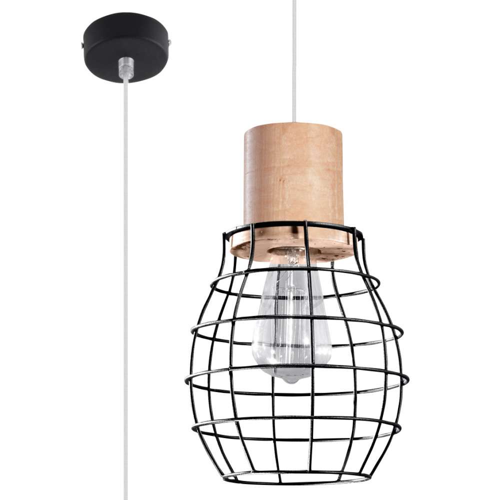 Źródło światła: E27, 1 x max. 60 W, 50 Hz, 220, IP20. Żarówka nie jest wliczony w cenę. Wymiary: 18,5 x 18,5 x max. 100 cm Materiał: stal / drewno Kolor: czarny / naturalnego drewna
