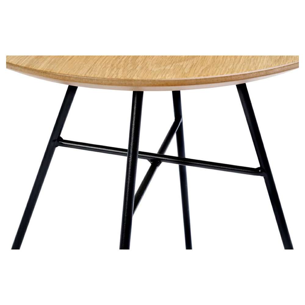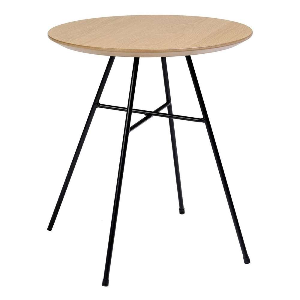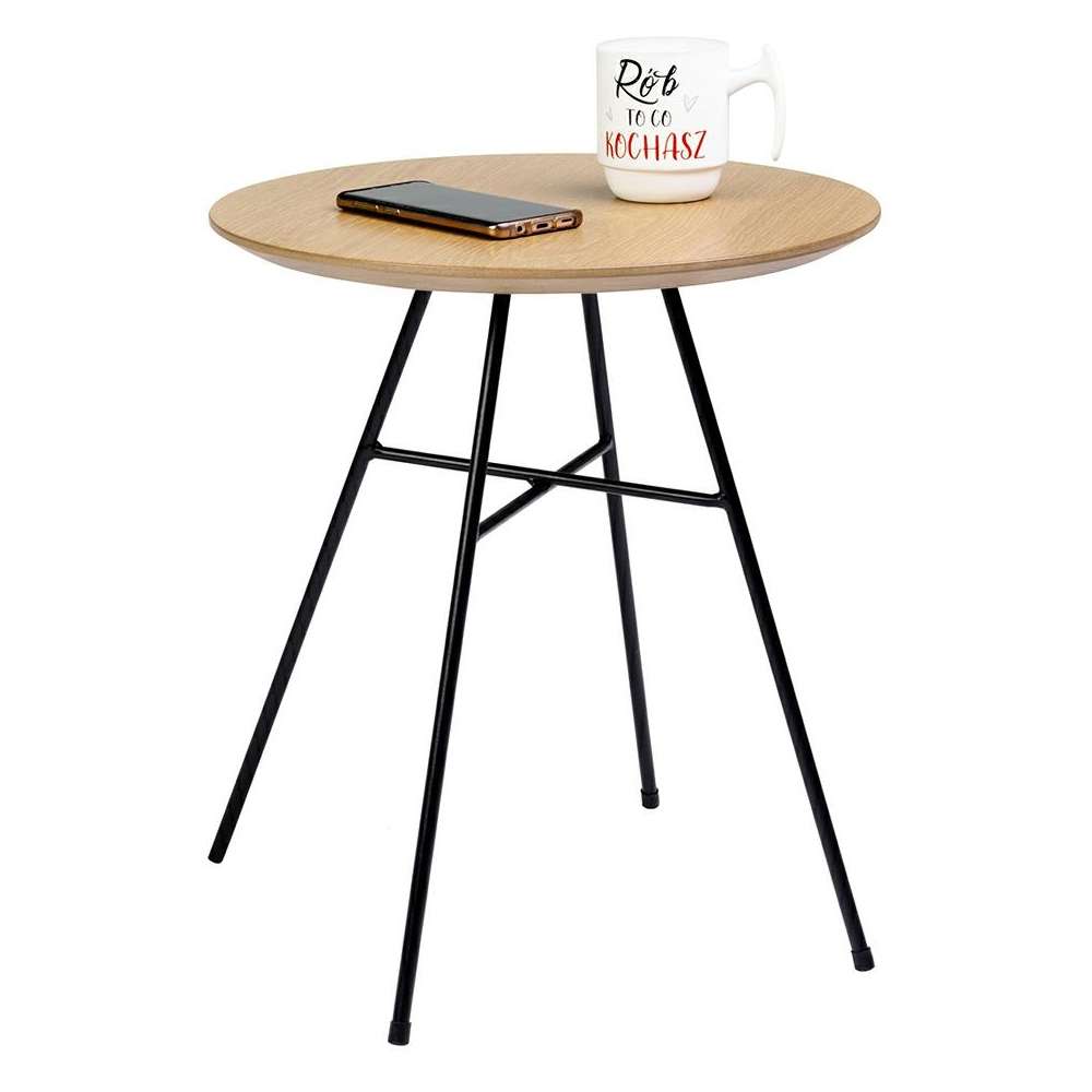 Stół filo. Okrągła górna ma grubość 1,8 cm. Jest on wykonany z MDF wykończone fornirem dębowym. Nogi metalowe powlekane czarny proszek. Stół filo, idealnie nadaje się do tradycyjnych, jak i nowoczesnych wnętrz. Waga netto: 4 kg Waga z opakowaniem: 5,5 kg maksymalny szt. Na opakowaniu 1. Sposób dostawy: Paczka