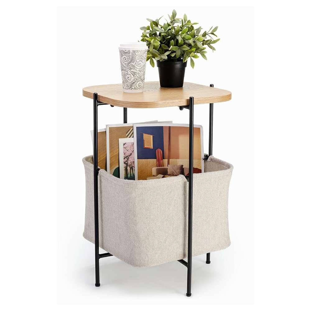 Borsa stolik w stylu skandynawskim. Square top wykonany jest z płyty MDF z okleiną dębową. Rama z czarnej metalu. Zwykły, szary worek, w którym można przechowywać drobne przedmioty, gazety, piloty. Całość tworzy funkcjonalny stół przestrzeni magazynowej. Waga netto 1 szt. : 4,5 kg masy ciała w opakowaniu: 5 kg Sposób dostarczania Paczka wymiary opakowania: 66 cm x 46 cm x 8 cm, że maksymalna ilość elementów. Pojemnik: 1Produkt do samodzielnego montażu: Tak