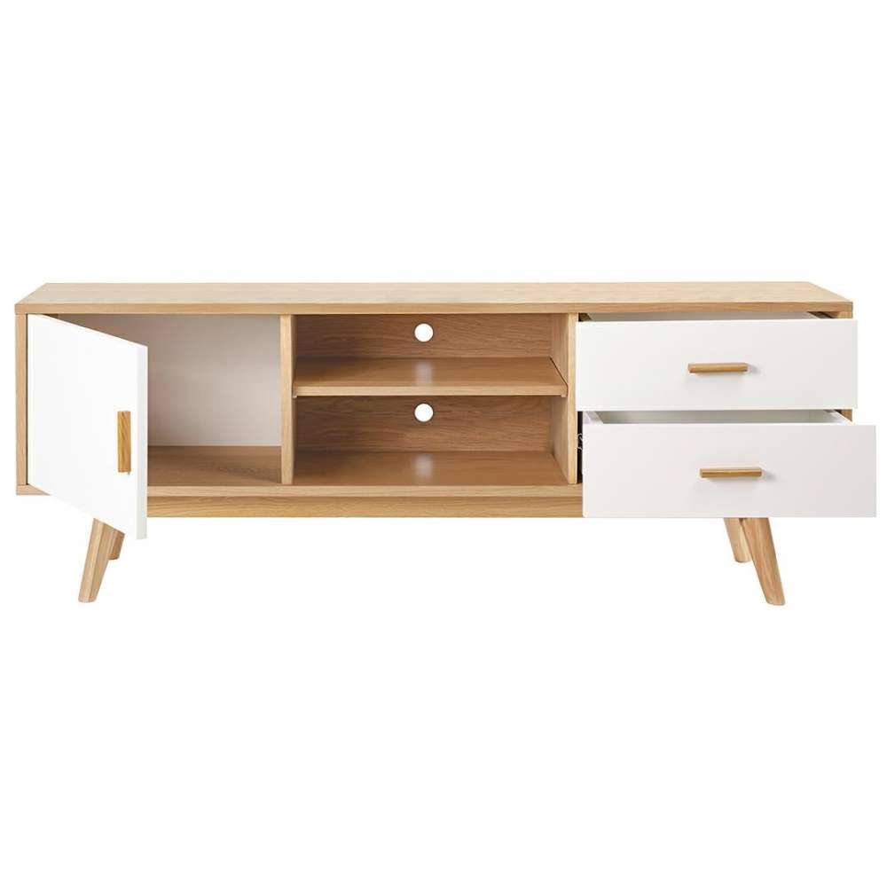 150 Travis jest bardzo interesująca propozycja stolik RTV styl skandynawski. Całość wykonana jest z powlekanego fornirem dębowym MDF -u. Matt białe drzwi i fronty szuflad. Z tyłu otwory przewidziane na kablach. Travis Dzięki dwóm zamykaną szafką i półką pozwoli Ci ustawić najważniejszym elektroniki użytkowej w domu. Masa netto: 25 kg masy ciała w opakowaniu: 28 kg Wymiary opakowania: 157 cm x 48 cm x 15 cm, 56 cm x 42 cm x 13,5 cm Sposób dostarczenia: Paleta do samodzielnego montażu Tak