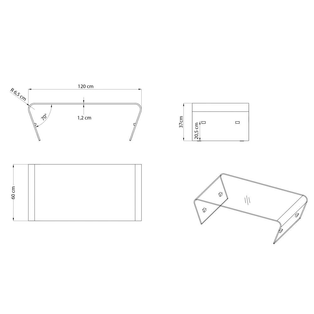 Szklany stolik wykonany z przezroczystego szkła. Zaokrąglone szkło zginanie. Praktyczna przezroczysta półka. Szkła Typ: FloatGrubość szkło 12 mm Masa netto 1 P .: 30 kg Opakowanie wagowych: 45 kg jednostki Max. Pojemnik: Sposób wysyłki 1: Paleta kombinacja produkt Tak