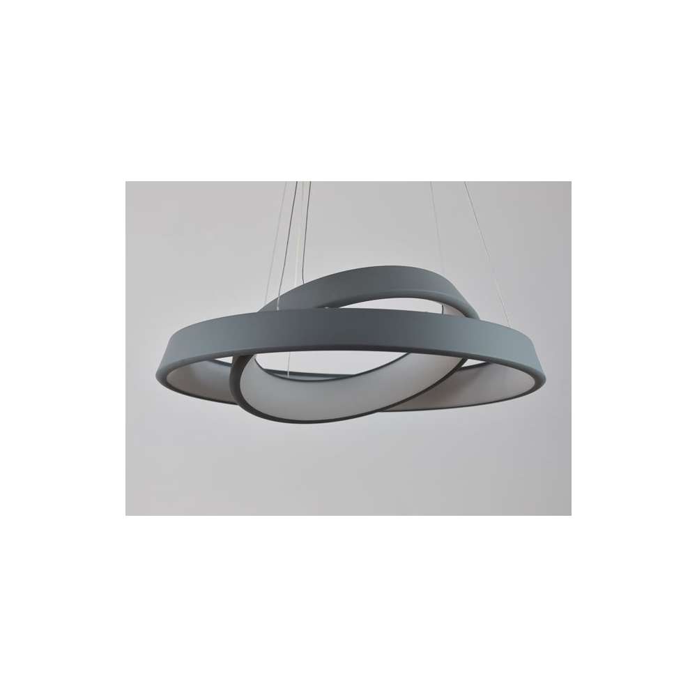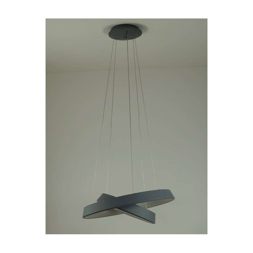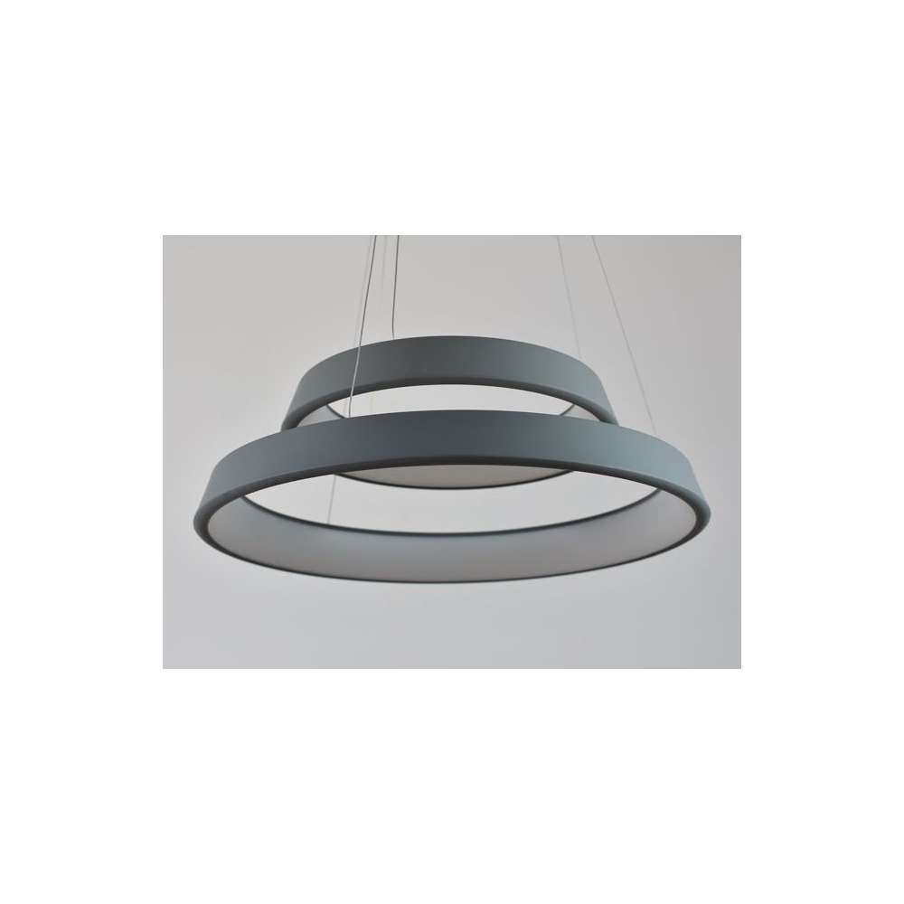 Nowoczesne lampy sufit orbity (pierścienie podwójne) w matowym szarym, zgodnie z technologią diod LED SMD, zalecane zwłaszcza w nowoczesnych pomieszczeń i biurach. Kształt lampy może być utworzone dowolnie za pomocą podawania drutu. Lampa pomalowane matową piasku o strukturze drobnego, to nie jest kolor aksamitu.